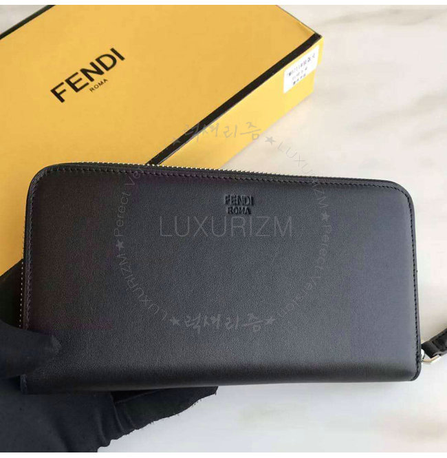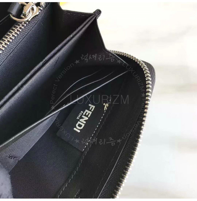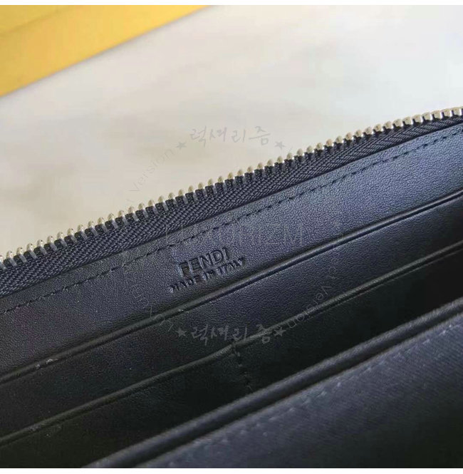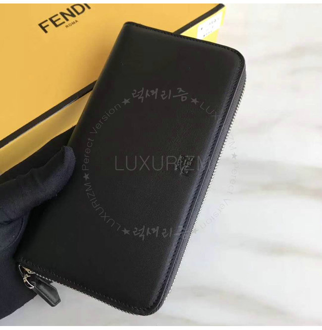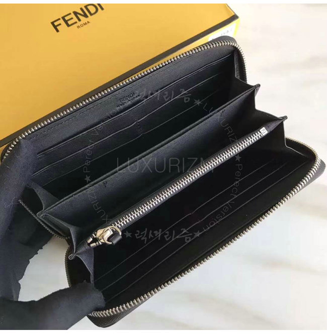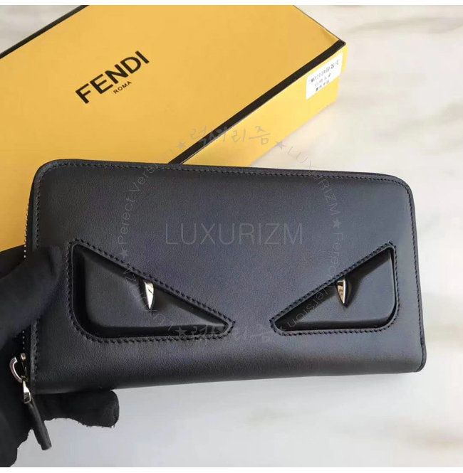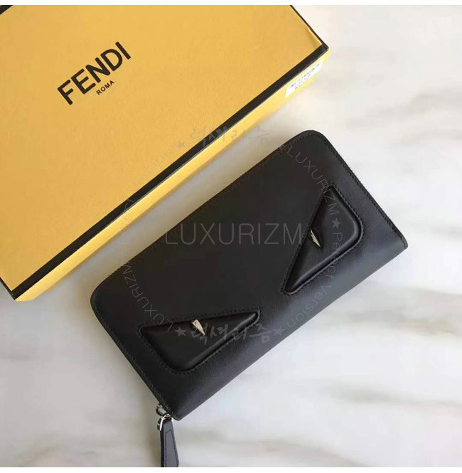 [스페셜오더]FENDI-7M0210 펜디 송아지 가죽 백 버그 아이 메탈 스터드 디테일 블랙 지퍼 어라운드 월릿