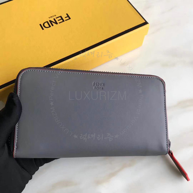 [스페셜오더]FENDI-7M0210 펜디 송아지 가죽 펜디 페이스 모티브 그레이 지퍼 어라운드 월릿