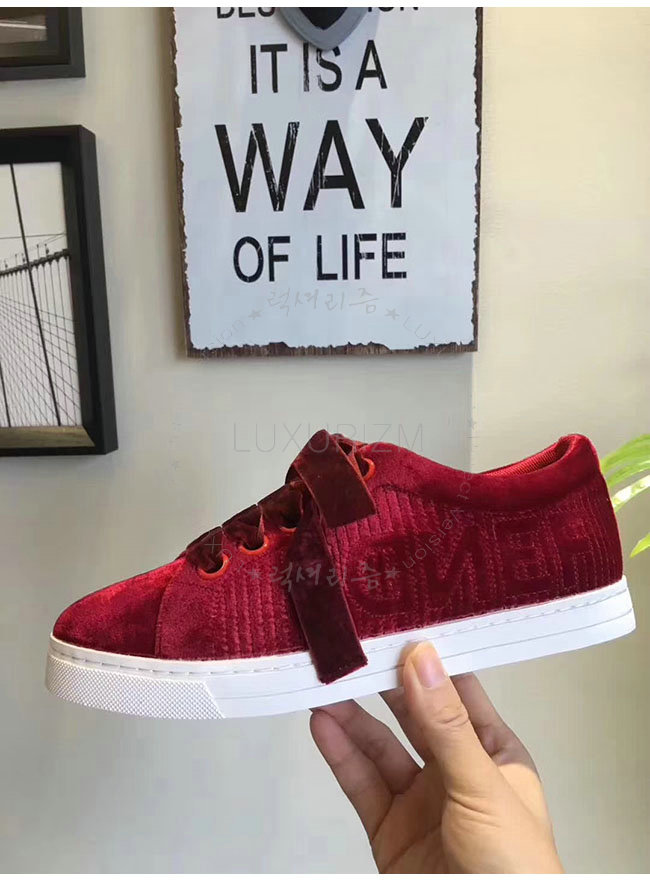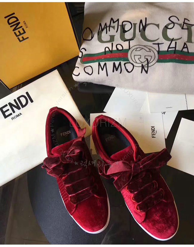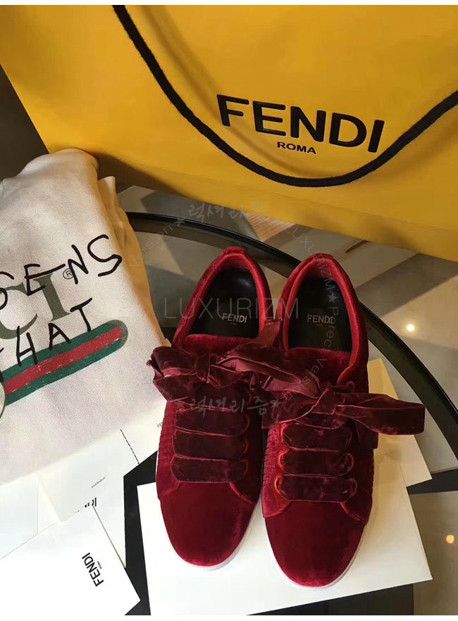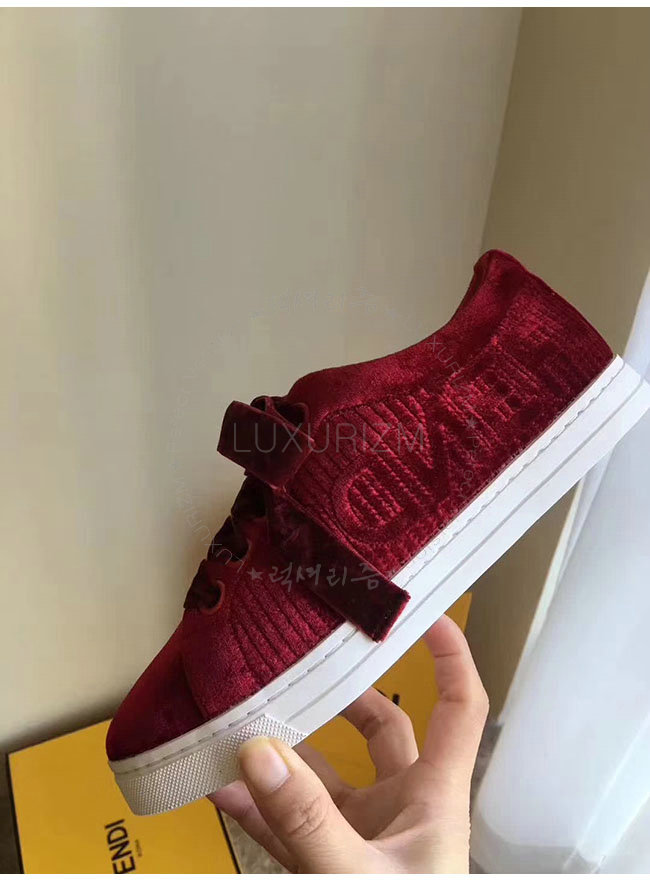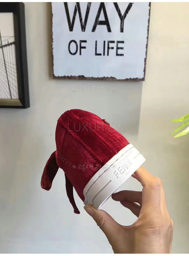 FENDI-8E6664 펜디 레드 벨벳 스니커즈 여성용