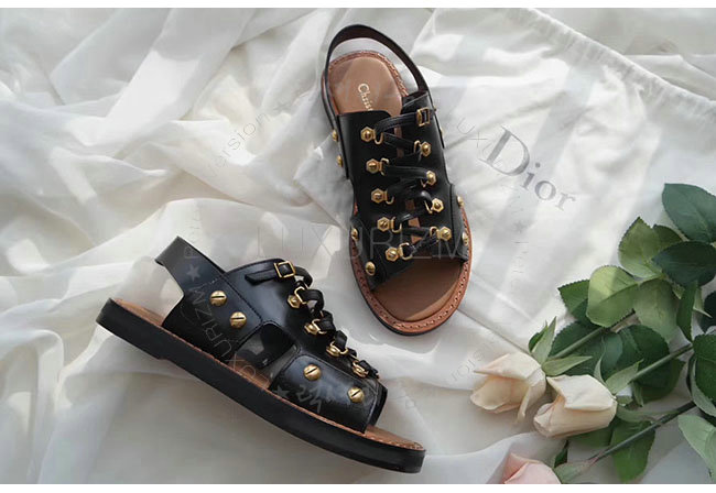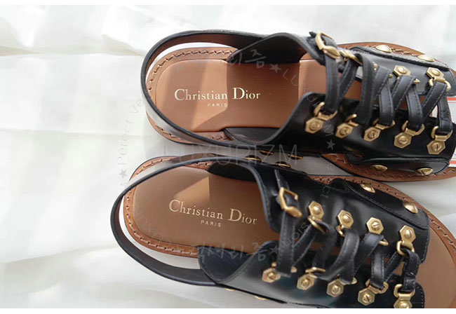 [스페셜오더]DIOR-KDQ064 디올 블랙 카프스킨 샌들 여성용