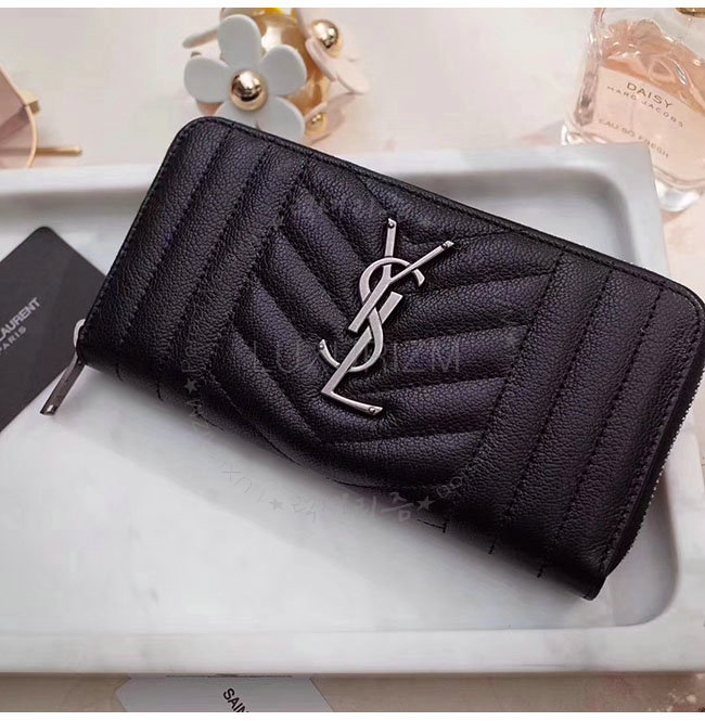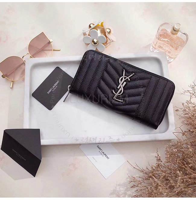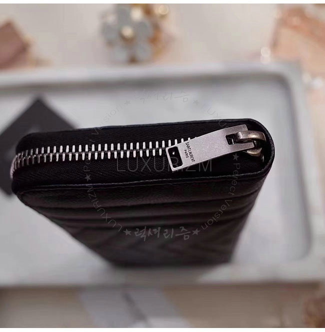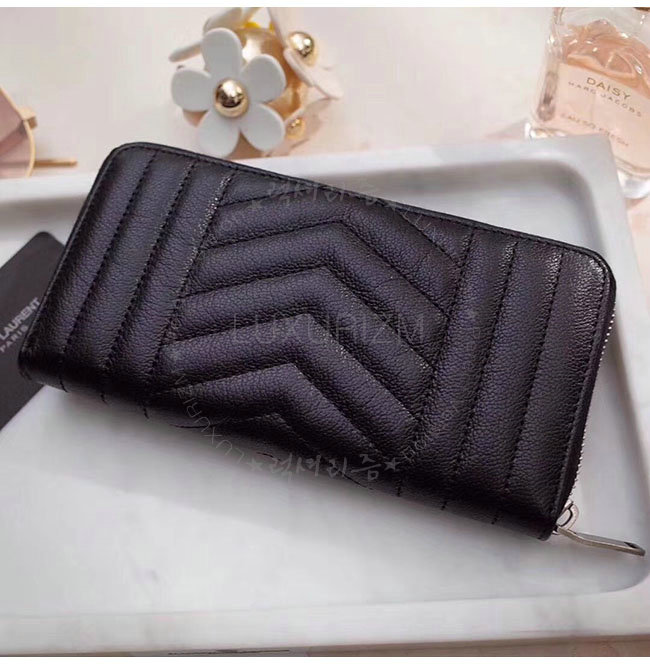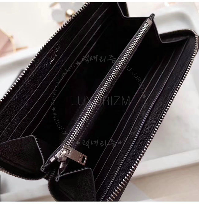 [스페셜오더]SAINT LAURENT-465232 생 로랑 블랙 가죽 모노그램 짚어라운드 지갑 여성용