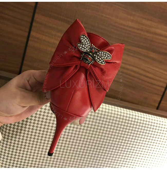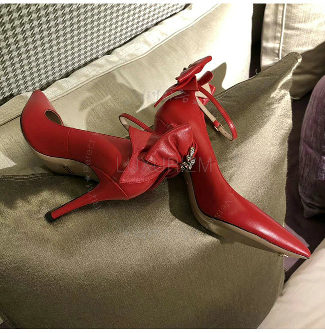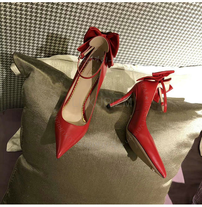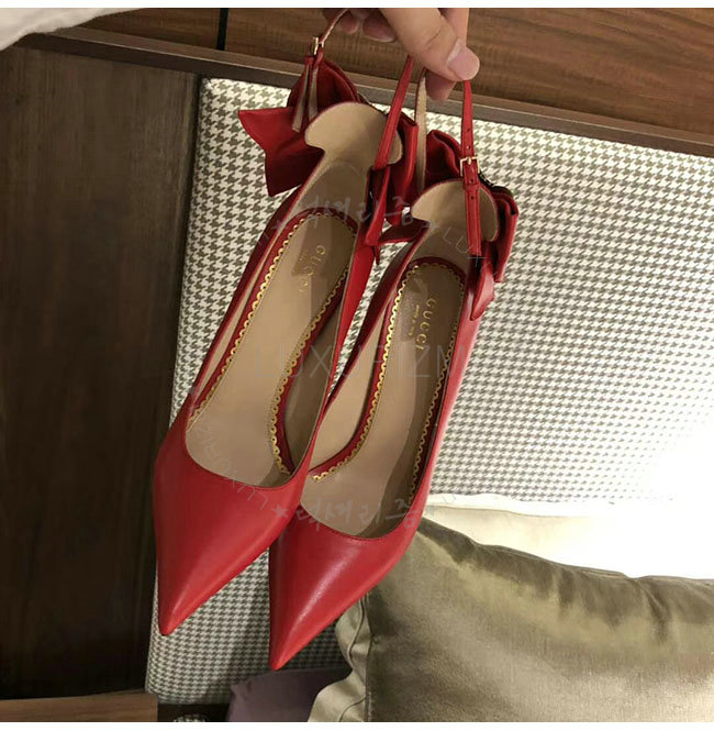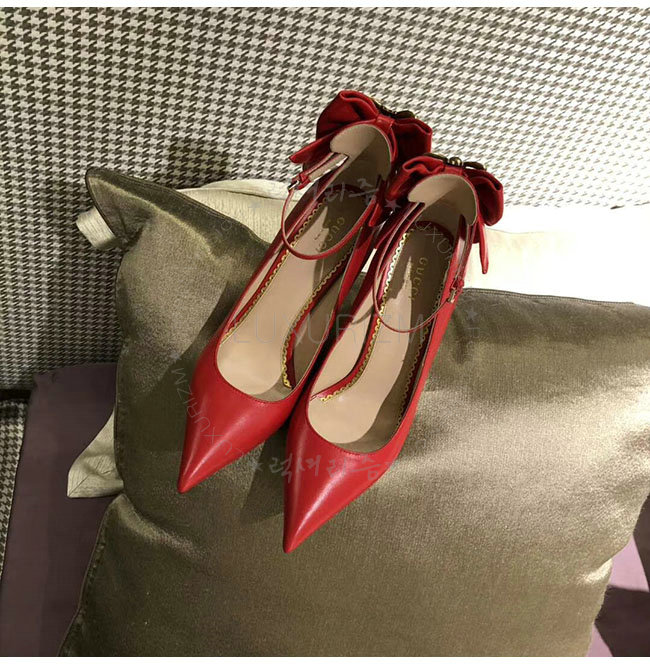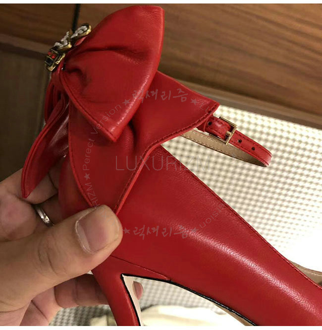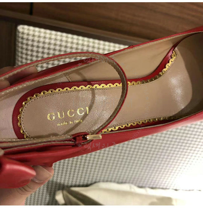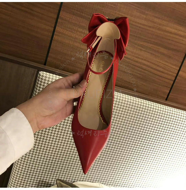 GUCCI-496590 6433 구찌 레드 램스킨 보우 펌프스 여성용