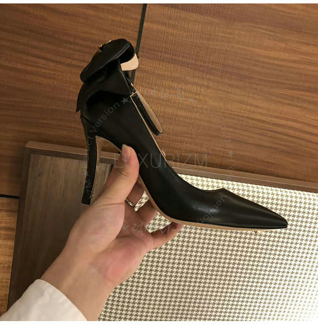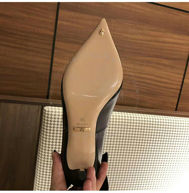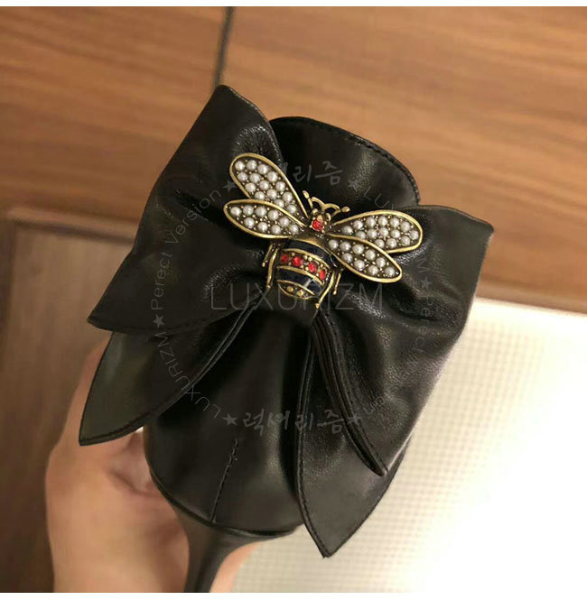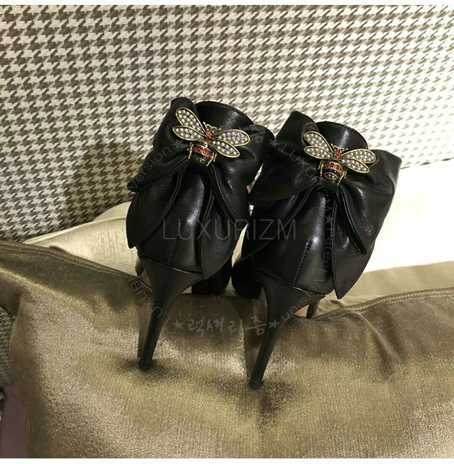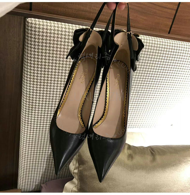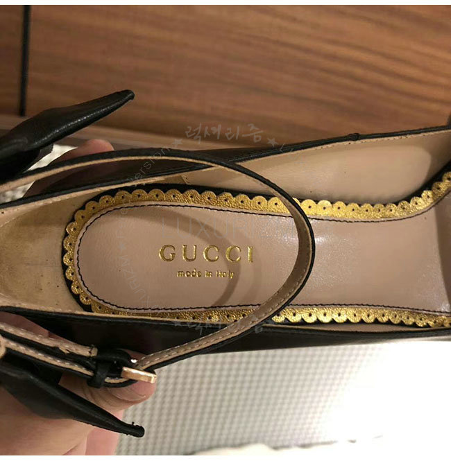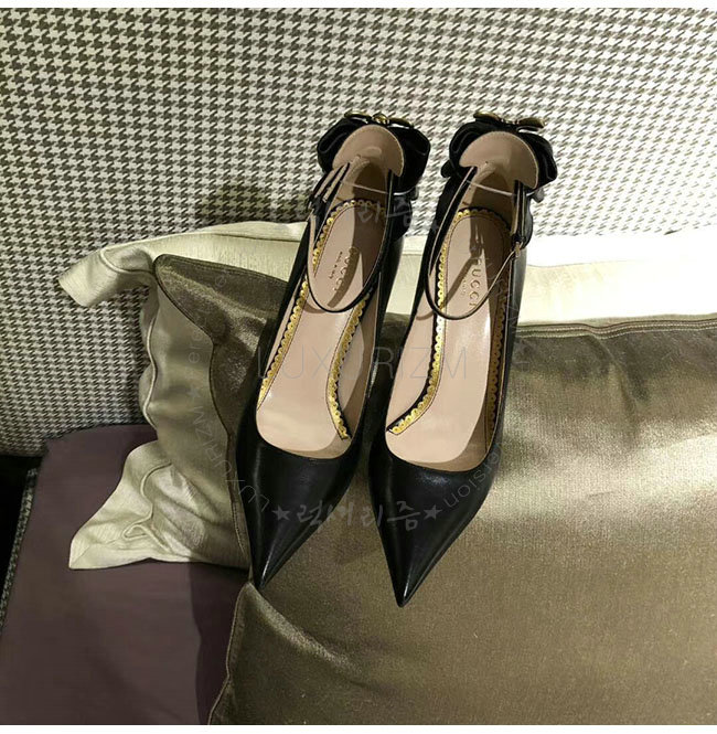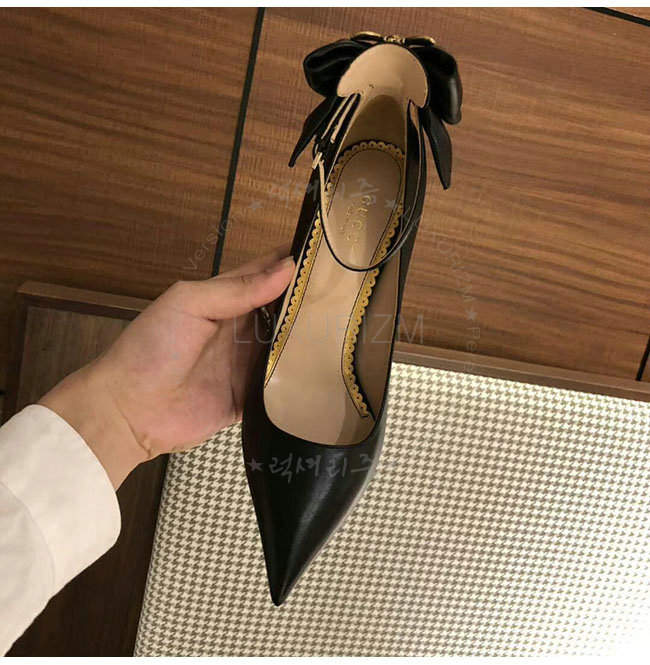 GUCCI-496590 1000 구찌 블랙 램스킨 보우 펌프스 여성용