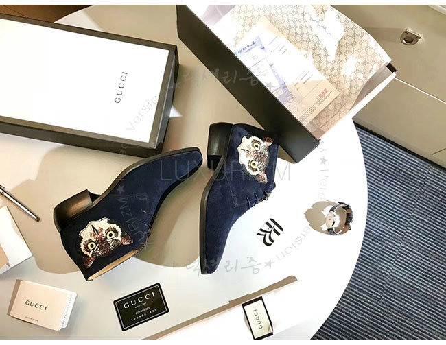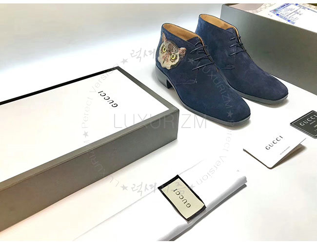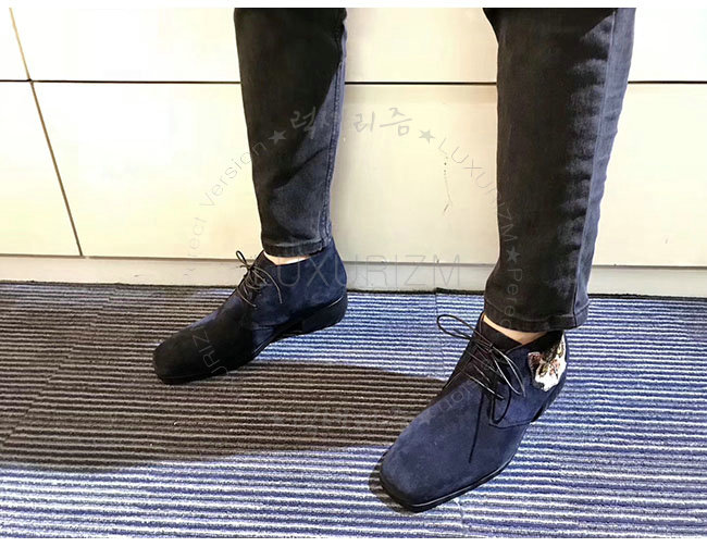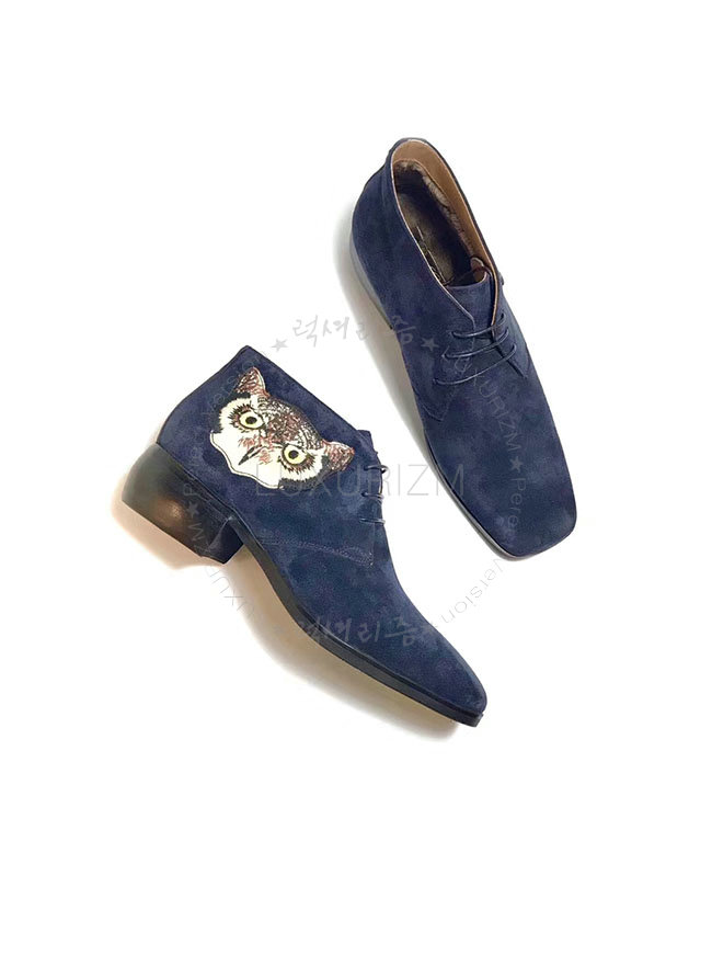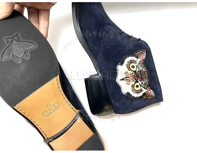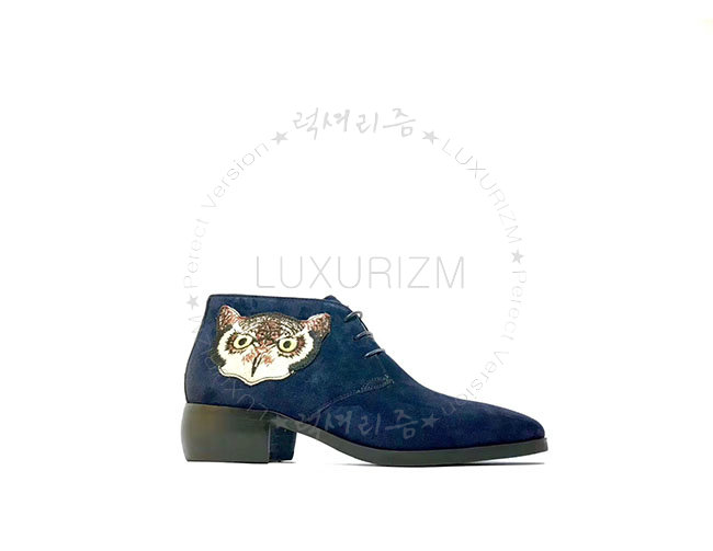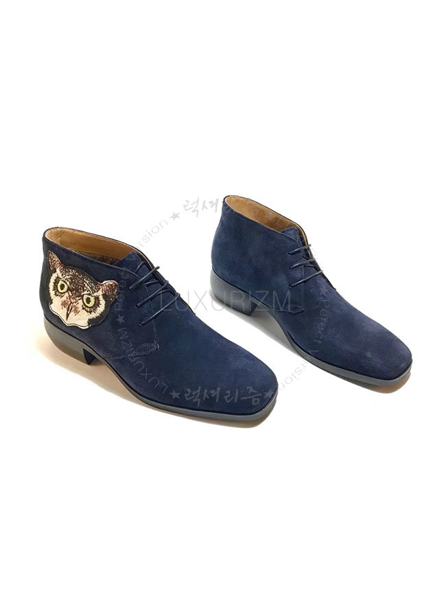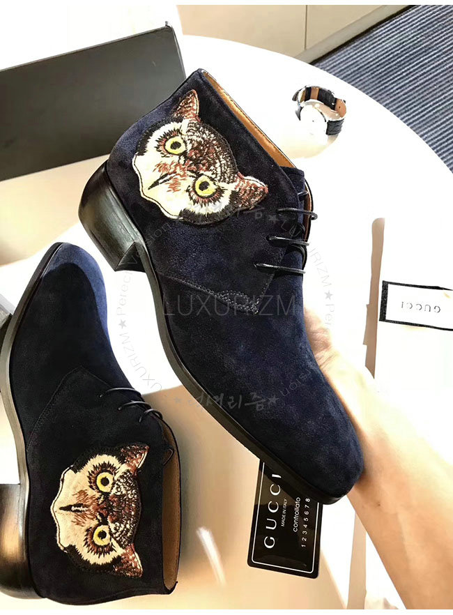 GUCCI-496874 6693 구찌 부엉이 자수 네이비 스웨이드 가죽 레이스업 남성용
