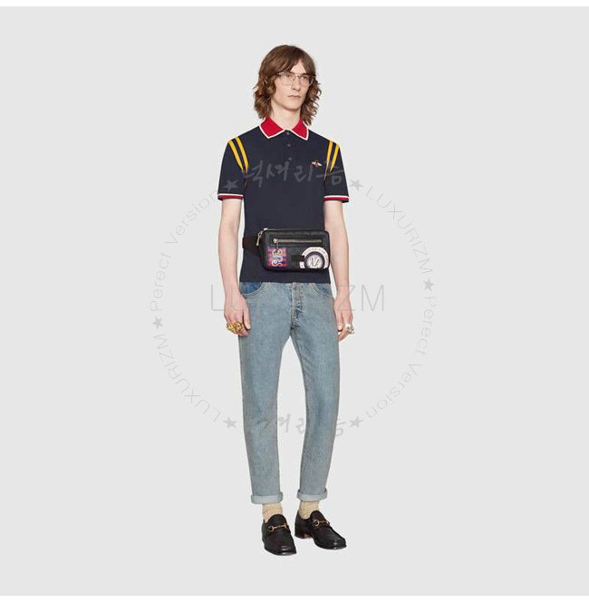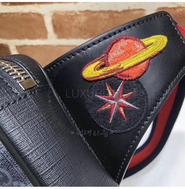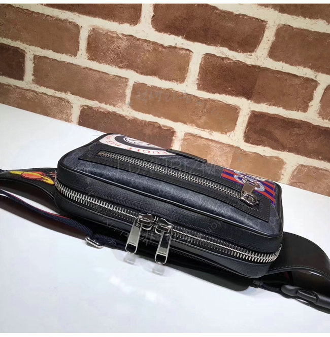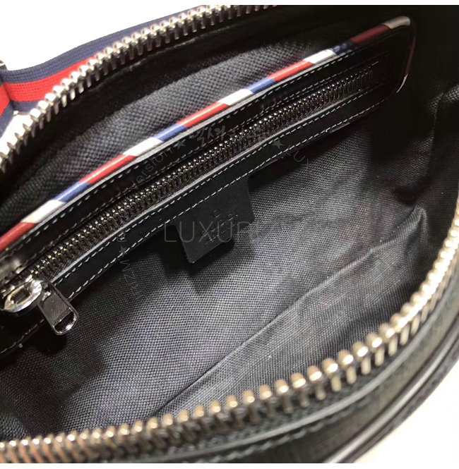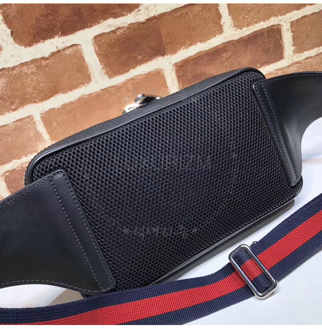 파이핑 구찌 트레이드마크 가죽 태그 디테일 블랙메쉬 뒷면앞면에 지퍼 포켓 내부지퍼