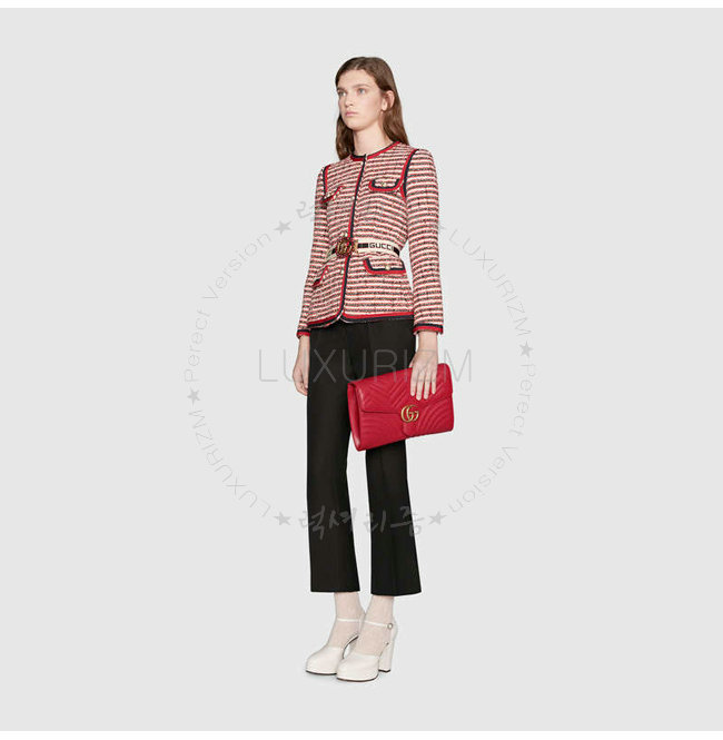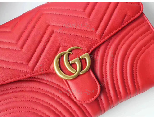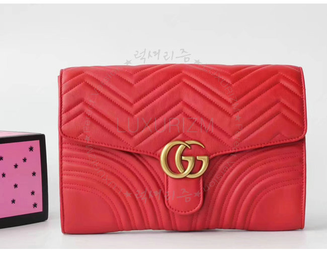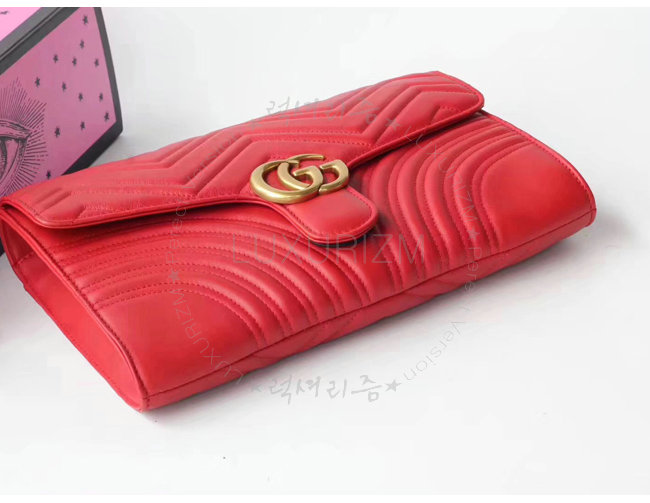 [스페셜오더]GUCCI-498079 6433 구찌 GG Marmont 레드 마틀라세 가죽 클러치