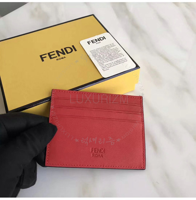 [스페셜오더]FENDI-7M0234 펜디 송아지 가죽 펜디 페이스 모티브 레드 카드 홀더
