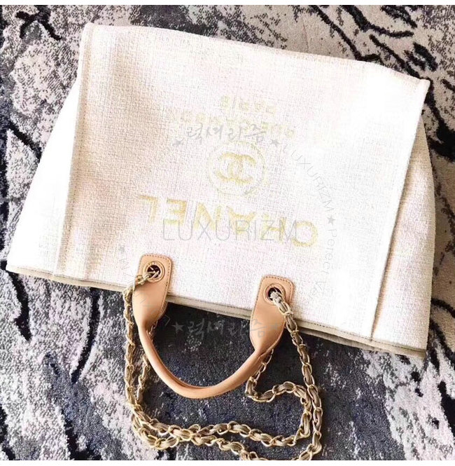 [스페셜오더]CHANEL-A66942 샤넬 캔버스 카프스킨 골드 메탈 베이지 라지 토트 백