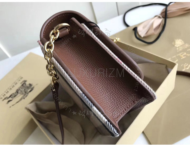 탈착식 어깨끈 수작업으로 마감칠된 테두리 유광 금속 하드웨어 앞면의 버버리 엠보싱 로고.