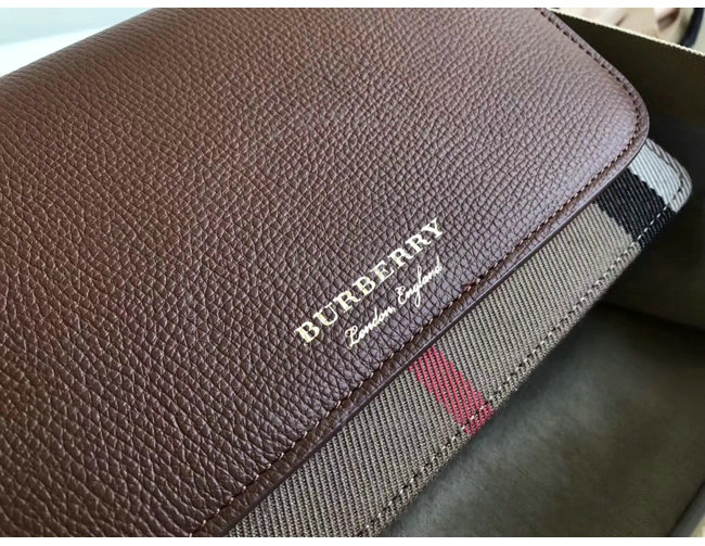 이탈리아에서 제작된 하우스 체크와 그레이니 가죽소재의 지갑.탈착식 어깨끈을 사용해 가벼운