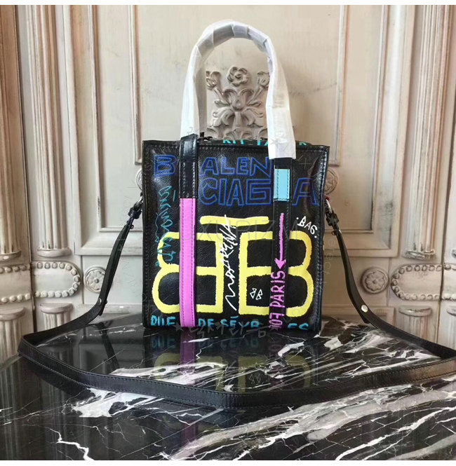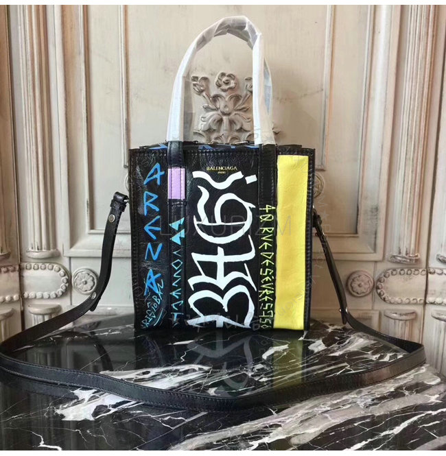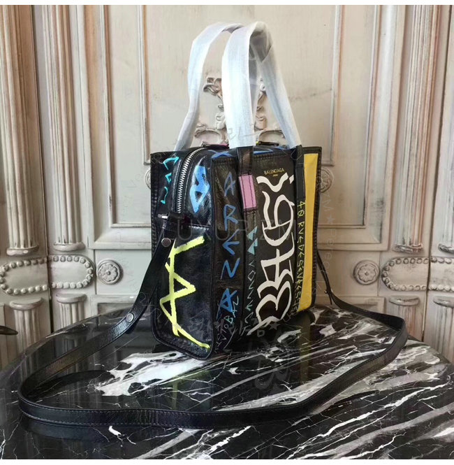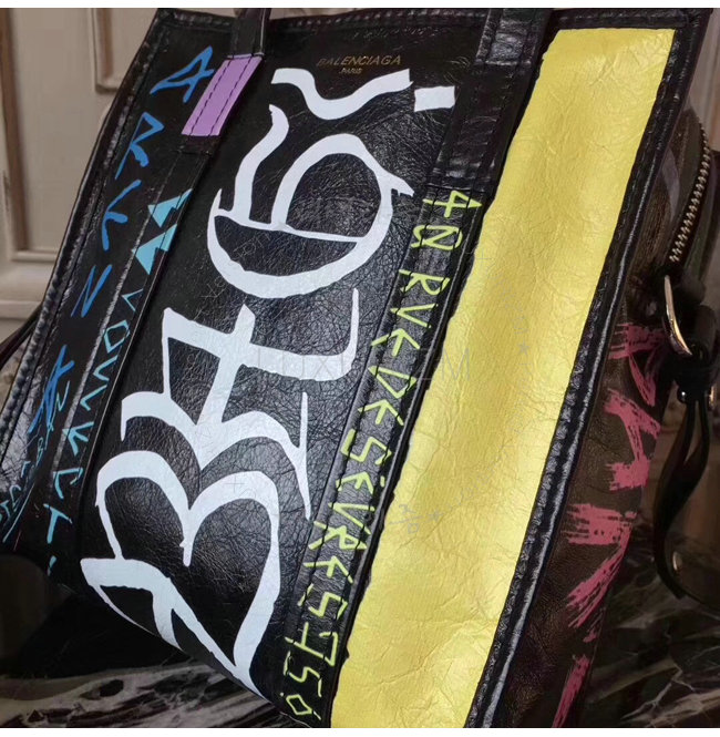 [스페셜오더]BALENCIAGA-452458 발렌시아가 프린트 아레나 가죽 그래피티 바자 쇼퍼 XS