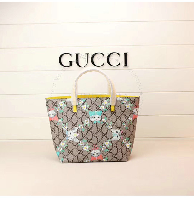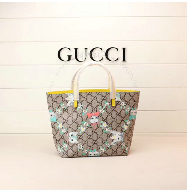 GUCCI-410812 9290 구찌 칠드런 GG수프림 캔버스 고양이 프렌즈 토트 백