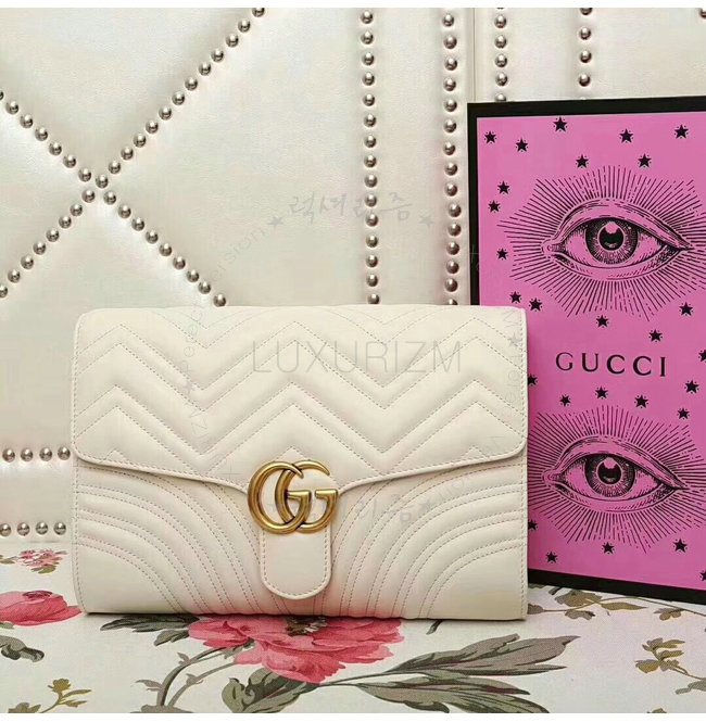 [스페셜오더]GUCCI-498079 9022 구찌 GG Marmont 화이트 마틀라세 가죽 클러치