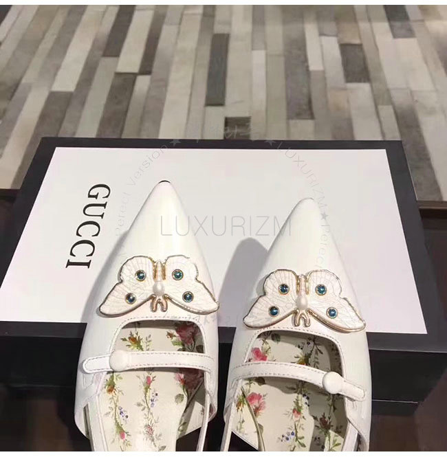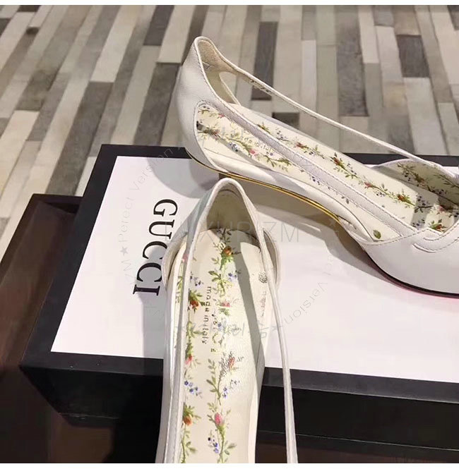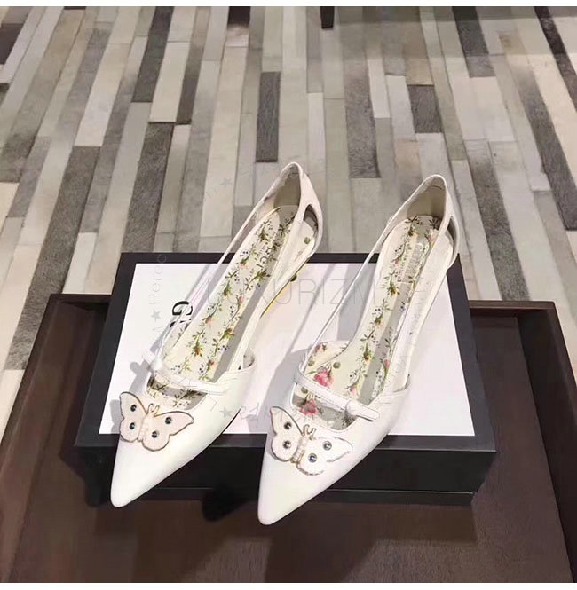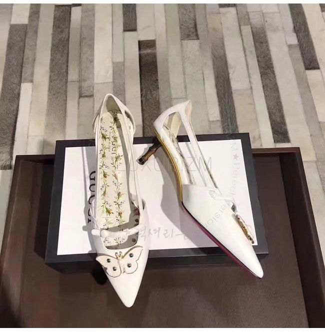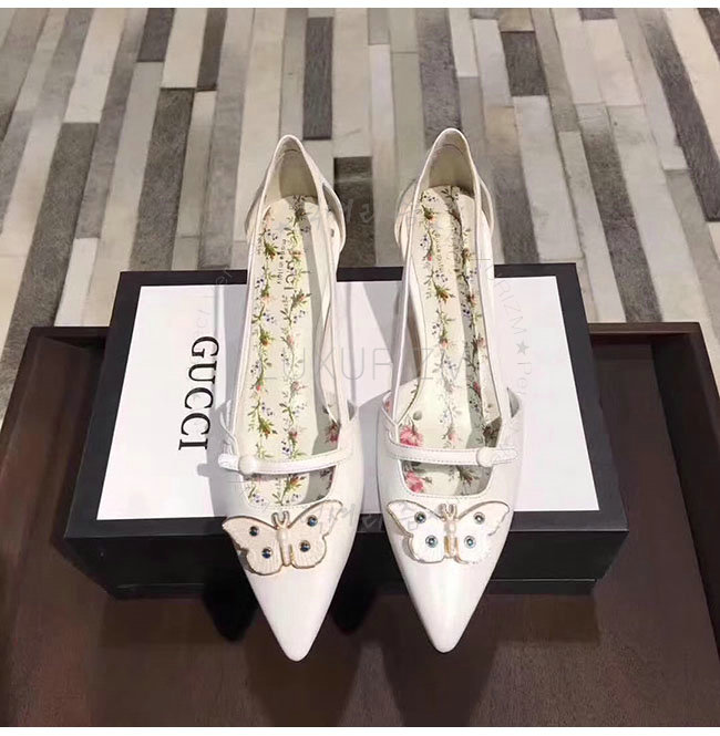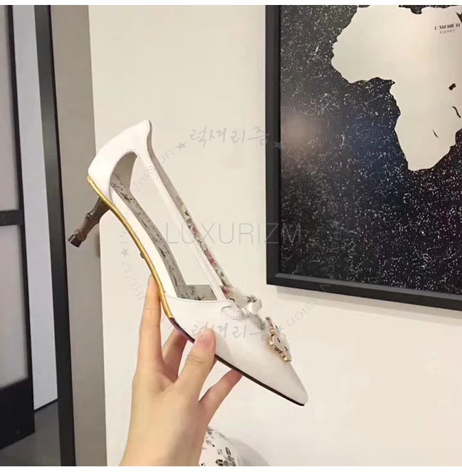 GUCCI-493934 9526 구찌 화이트 가죽 모스 펌프스 여성용