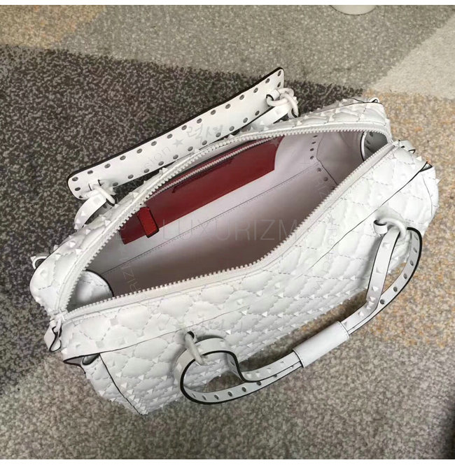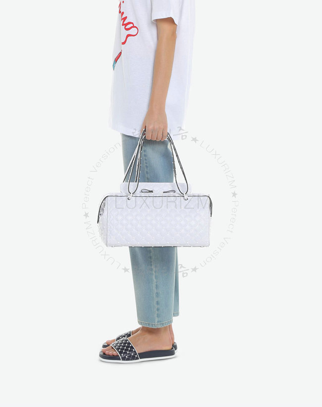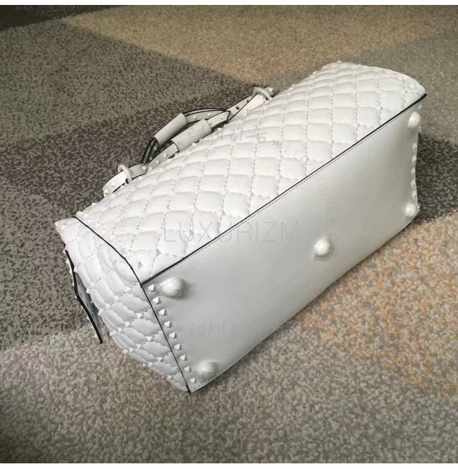 [스페셜오더]VALENTINO-PW2B0B33 발렌티노 송아지 가죽 프리 락스터드 스파이크 화이트 더플 백