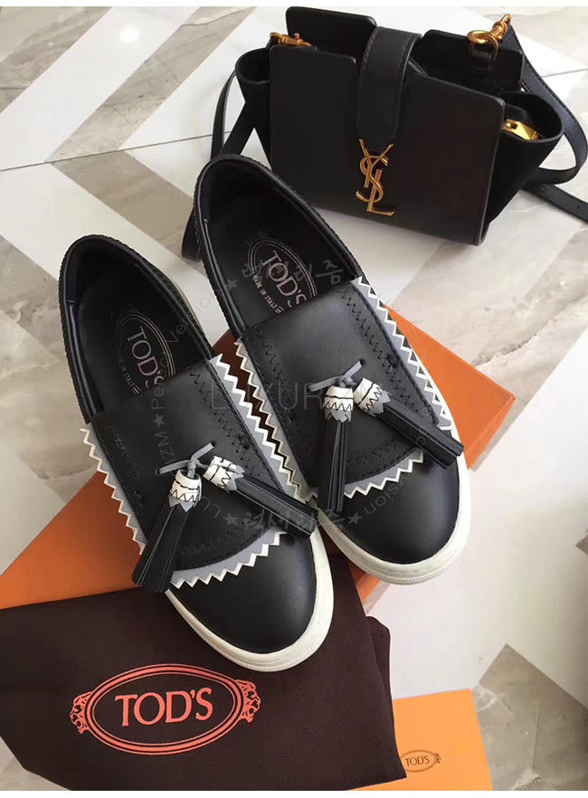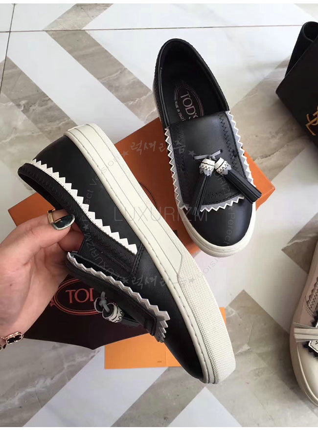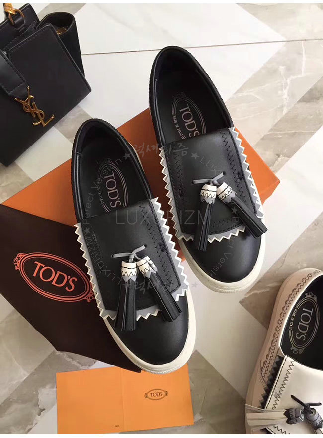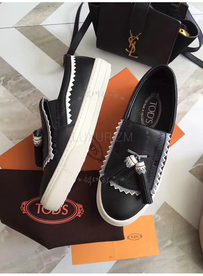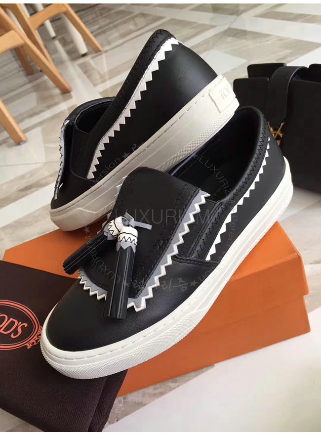 TODS-XK0W320 토즈 블랙 카프스킨 슬립온 스니커즈 여성용