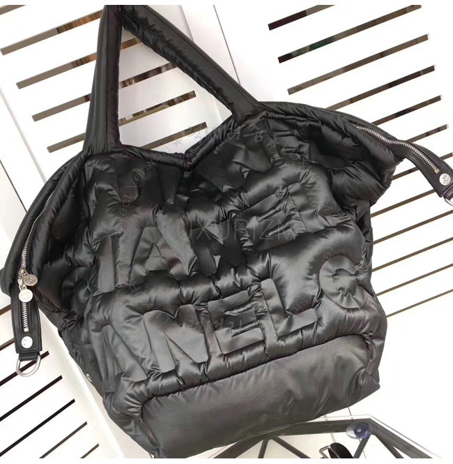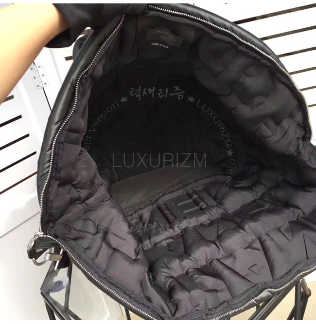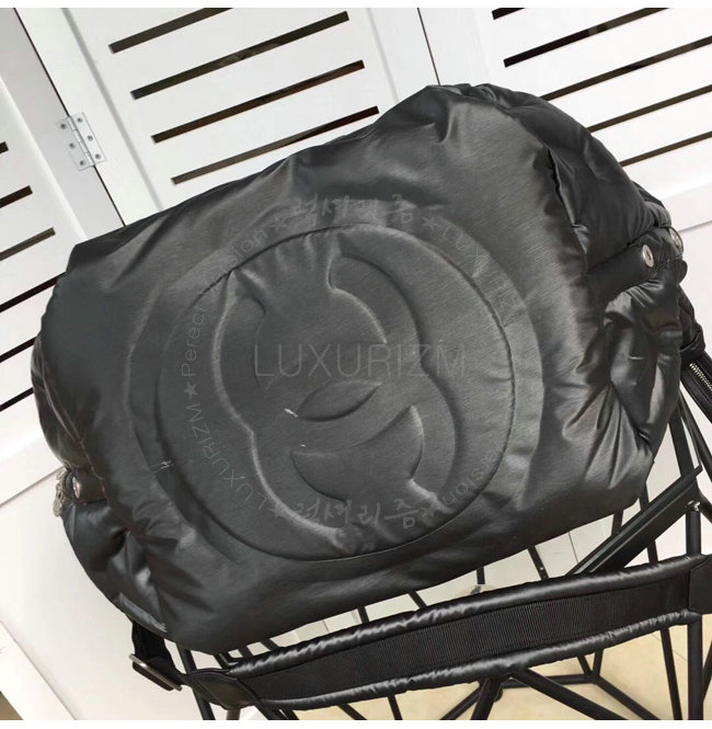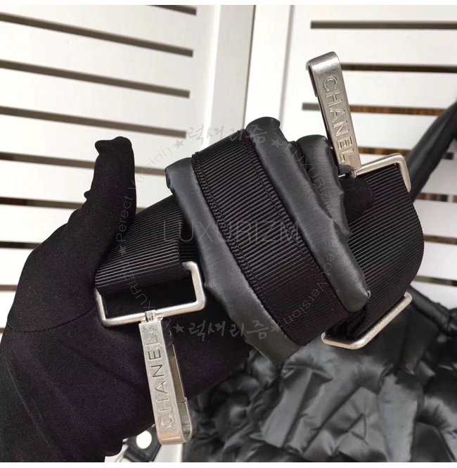 [스페셜오더]CHANEL-A91935 샤넬 엠보싱 나일론 실버 메탈 블랙 라지 지퍼 쇼핑 백