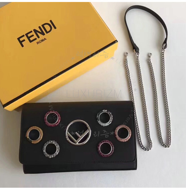 [스페셜오더]FENDI-8BS004 펜디 송아지 가죽 F IS FENDI 주얼 아플리케 장식 블랙 체인 지갑