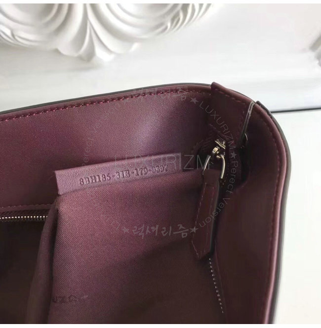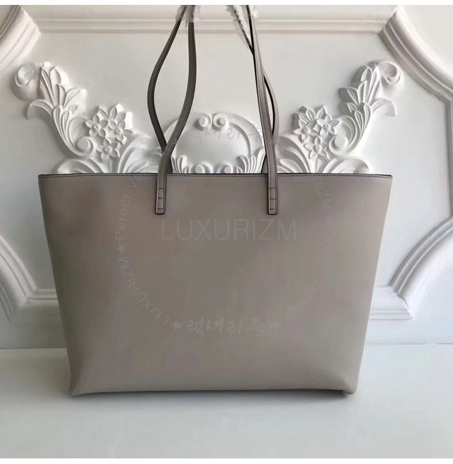 부드러운 송아지 가죽 토트백.대비를 이루는 메탈 아플리케 장식과 라이닝 처리된