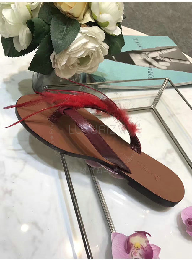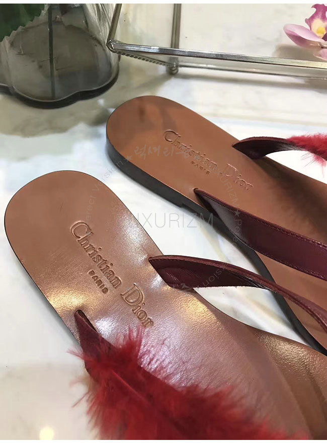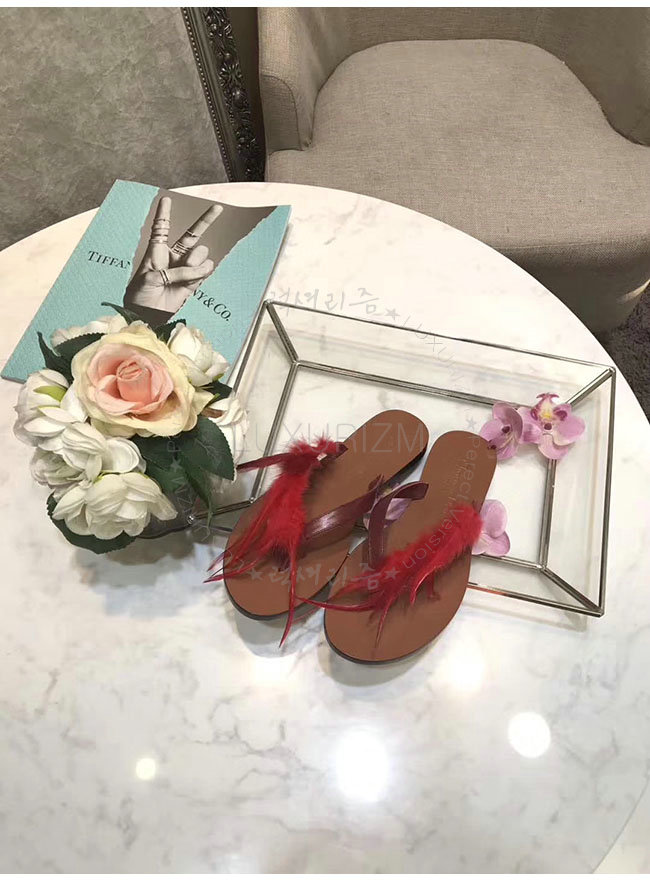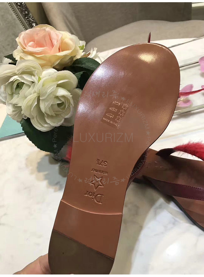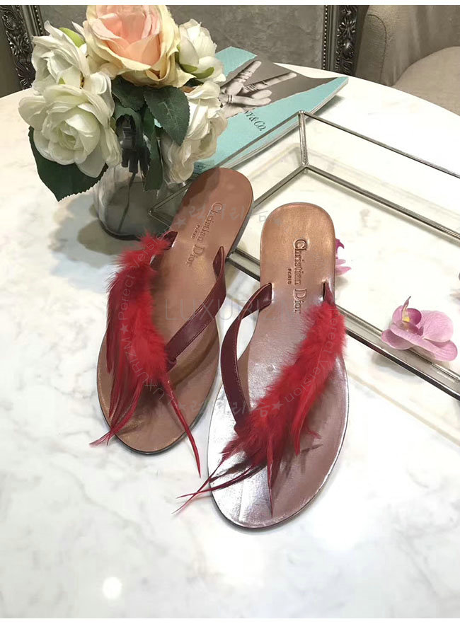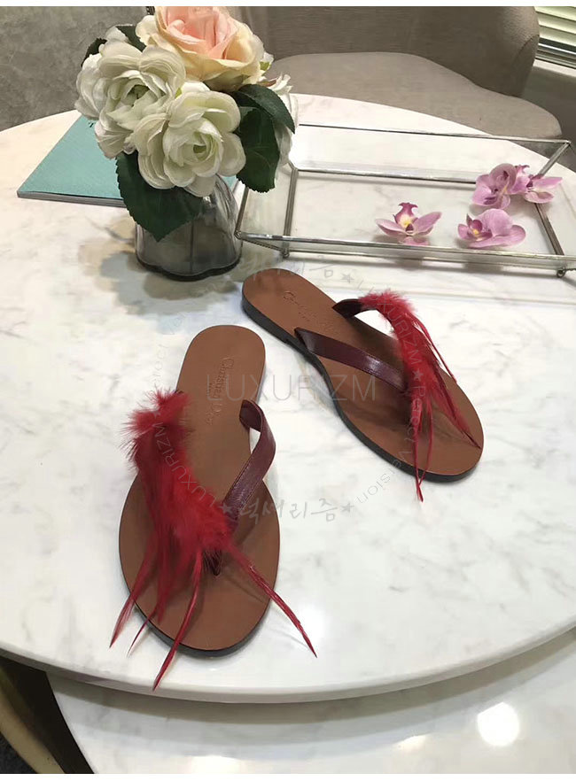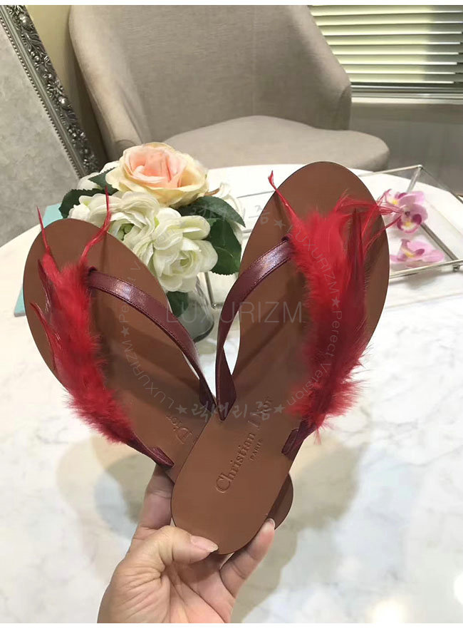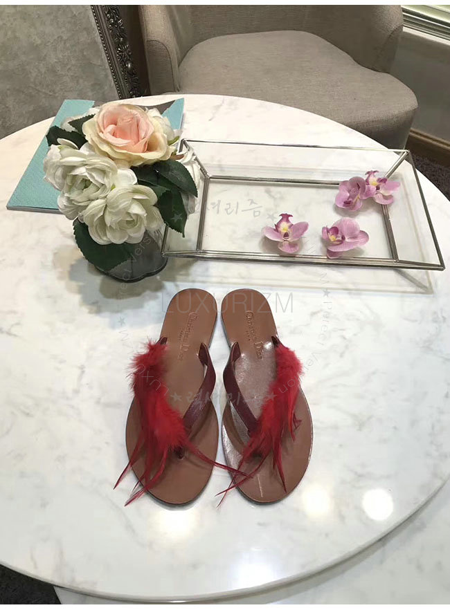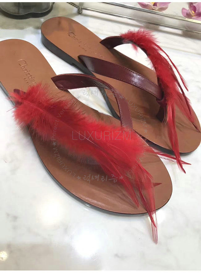DIOR-KCF149 디올 레드 깃털 송아지 가죽 통 샌들 여성용
