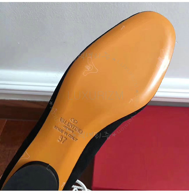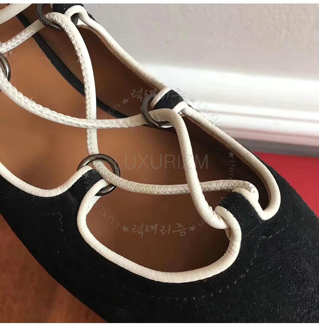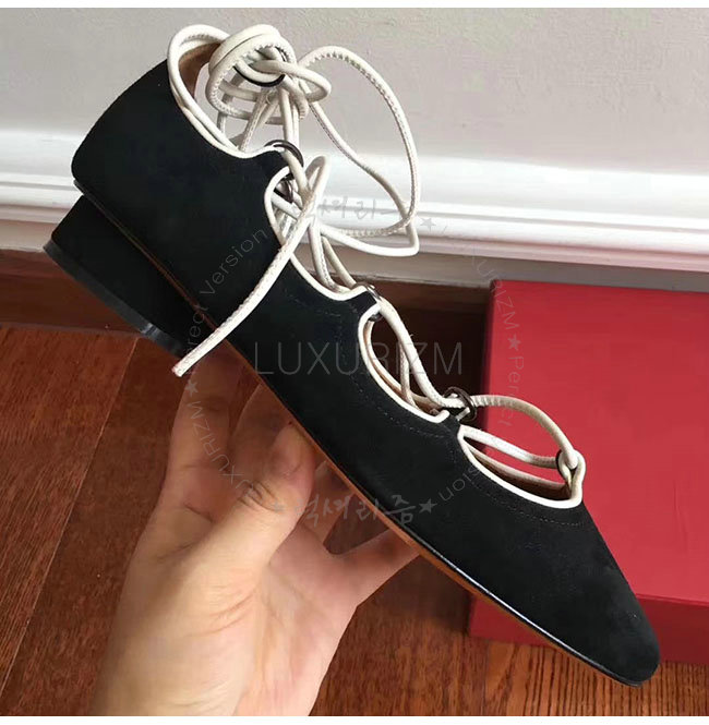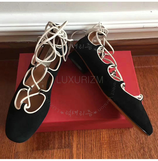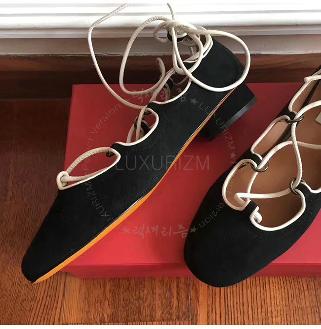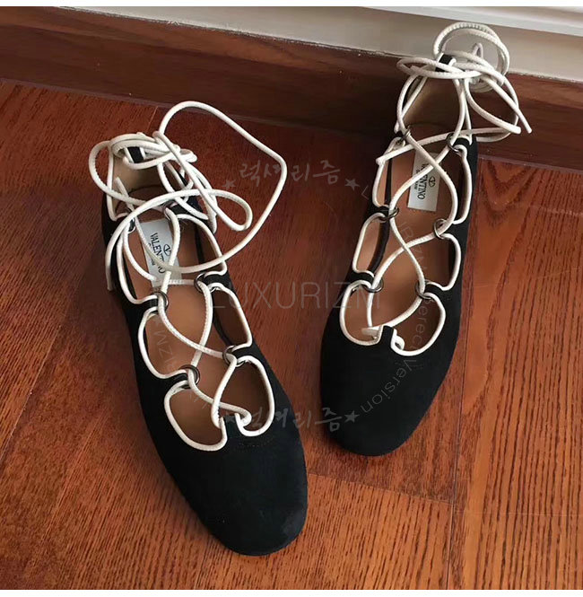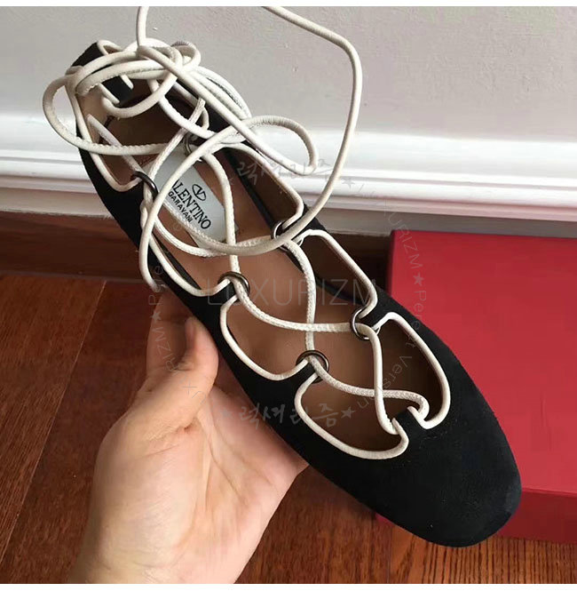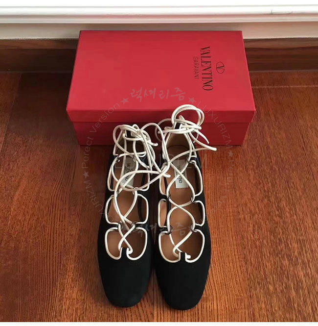VALENTINO-NW1S0D 발렌티노 블랙 스웨이드 양가죽 발레리나 플랫 슈즈 여성용