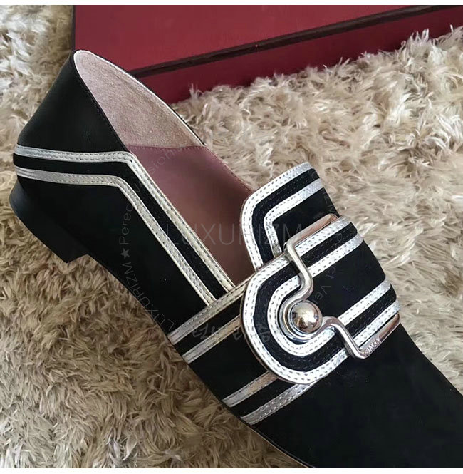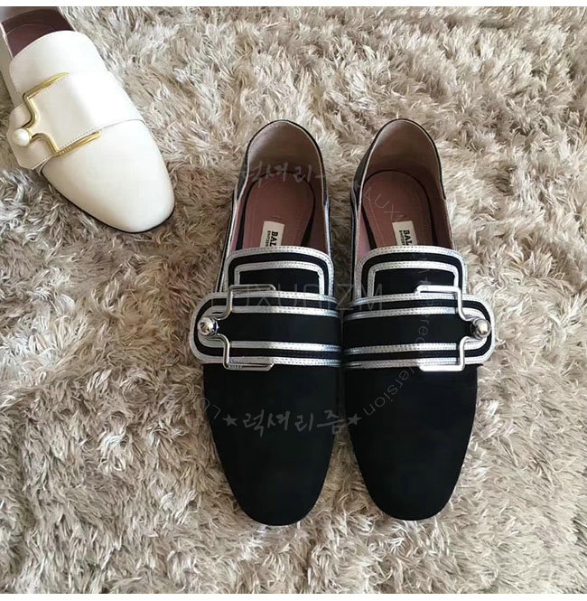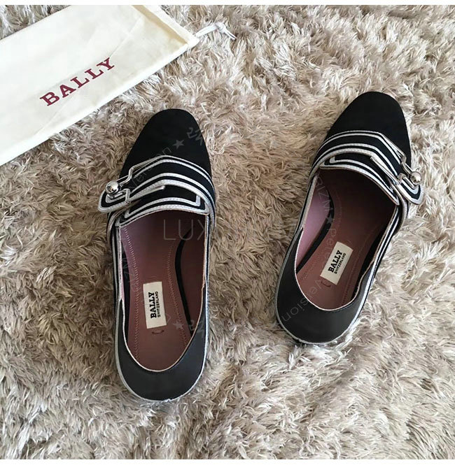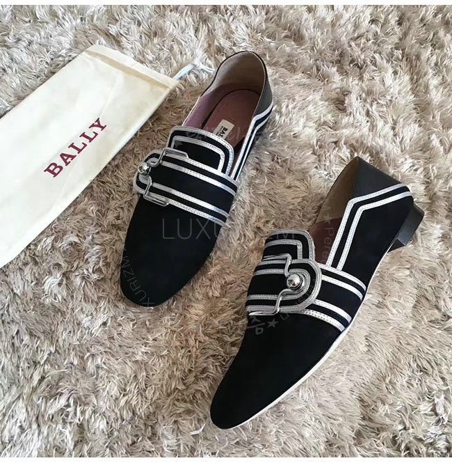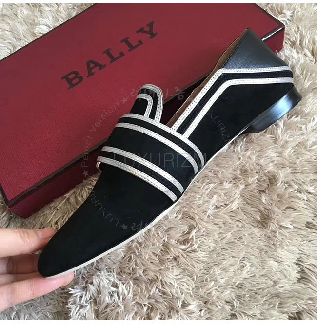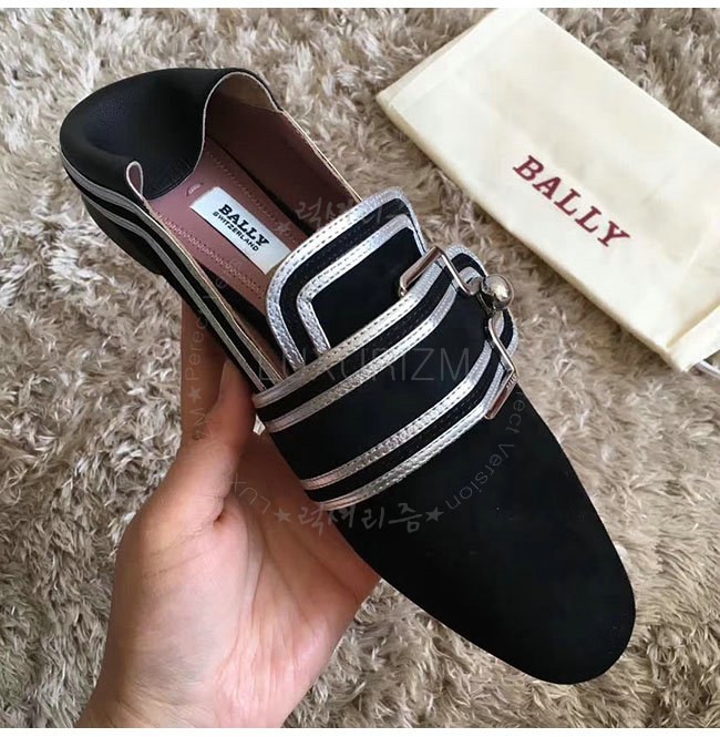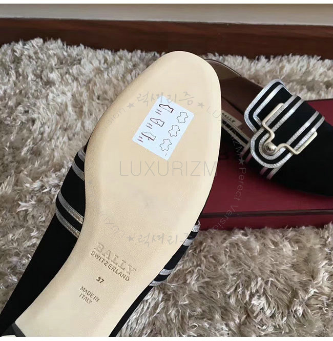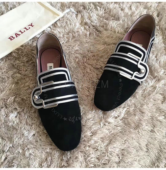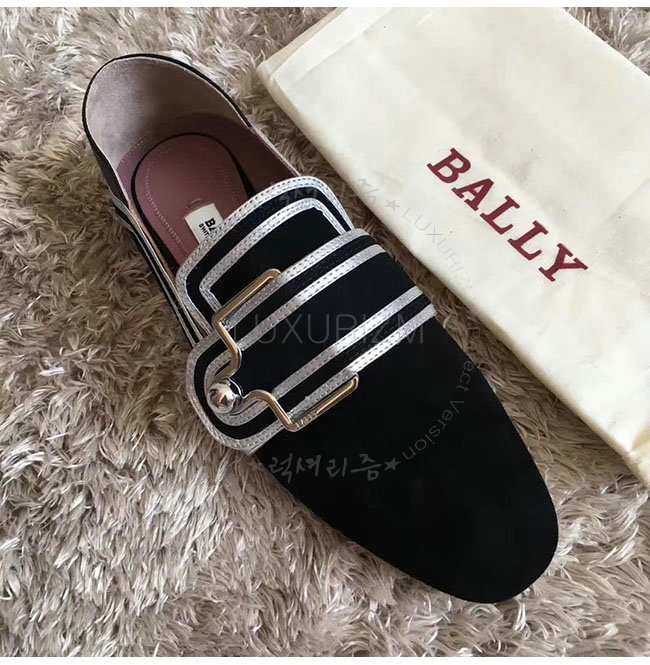 BALLY-6221042 발리 블랙 스웨이드 가죽 실버 라인 마엘 플랫 여성용