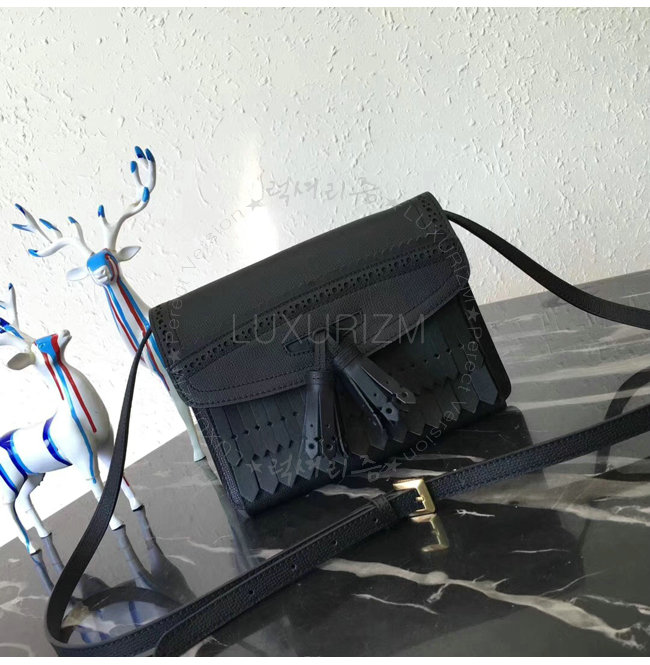 [스페셜오더]BURBERRY-40683441 버버리 송아지 가죽 브로그 프린지 디테일 블랙 크로스바디 백