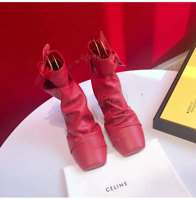 CELINE-323883 셀린느 레드 램스킨 랩핑 배클리스 펌프스 여성용