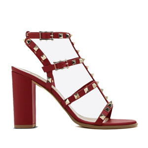 VALENTINO-PY2S07 발렌티노 레드 카프스킨 락스터드 샌들 펌프스 여성용