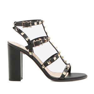 VALENTINO-PY2S07 발렌티노 블랙 카프스킨 락스터드 샌들 펌프스 여성용