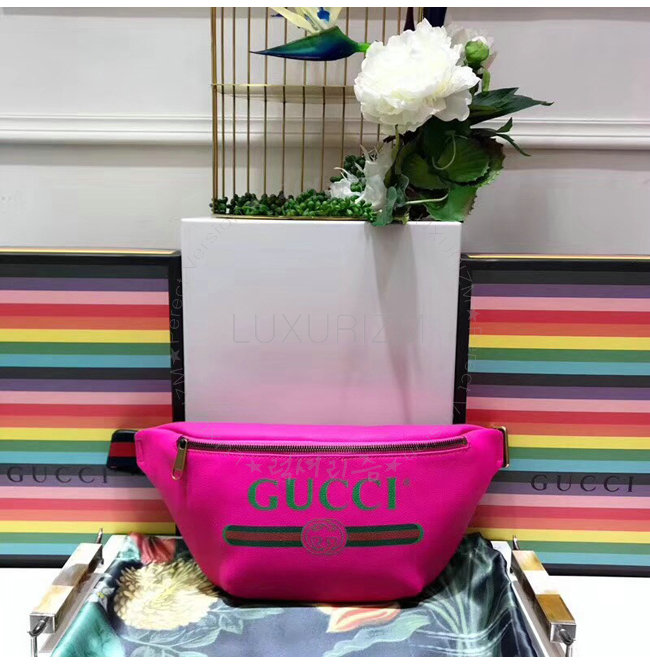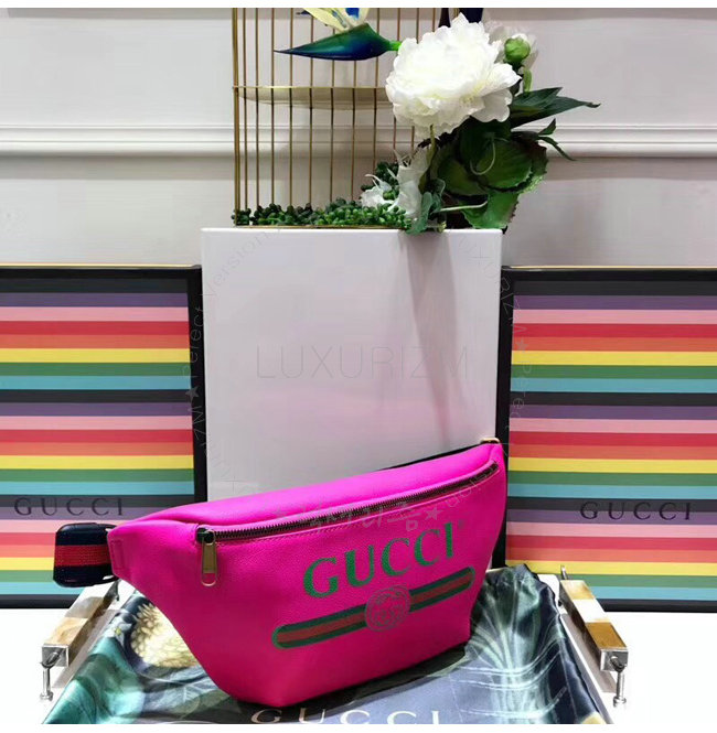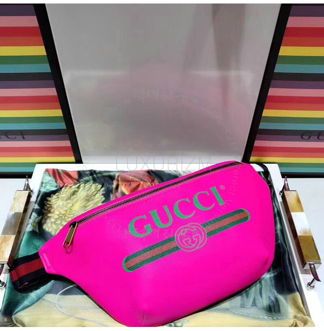 [스페셜오더]GUCCI-493869 8842 구찌 핑크 가죽 구찌 프린트 벨트 백