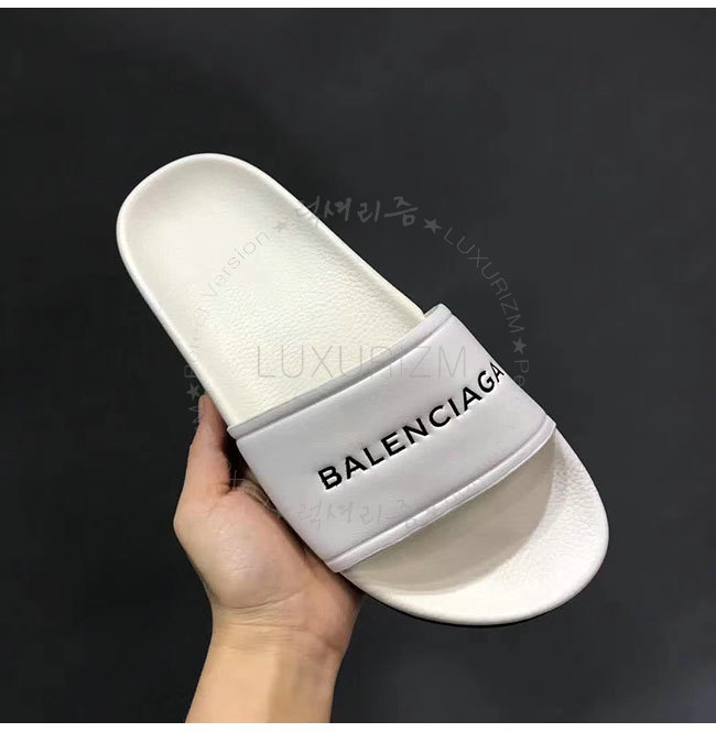 BALENCIAGA-506347 발렌시아가 화이트 카프스킨 파이신 플랫 샌들 남녀공용
