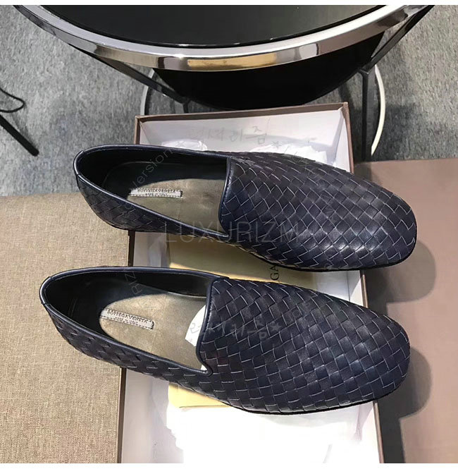[스페셜오더]BOTTEGAVENETA-324658 보테가 베네타 네이비 인트레치아토 카프 피안드라 슬리퍼 남성용 가격 : 300,000원