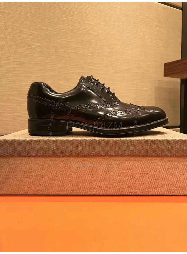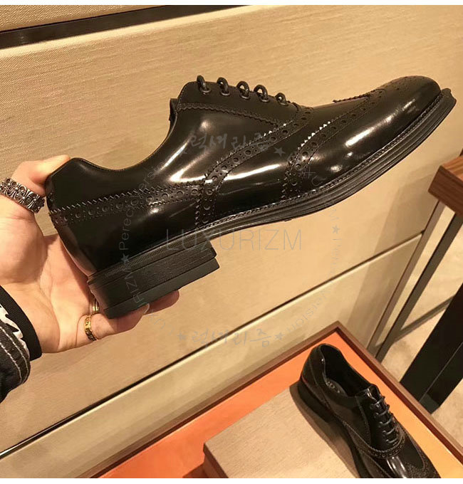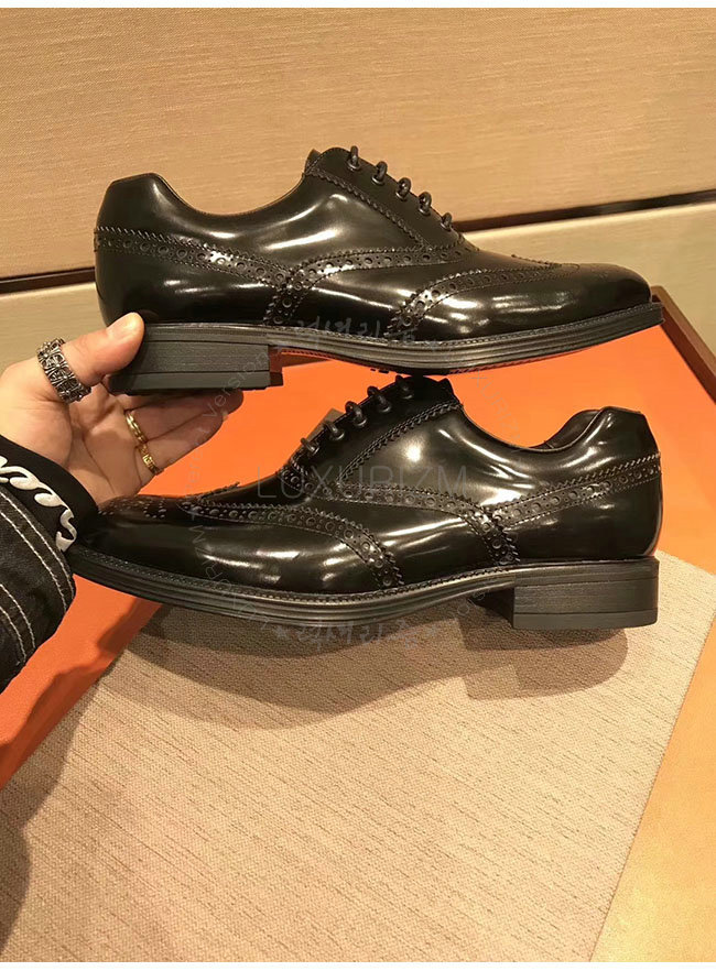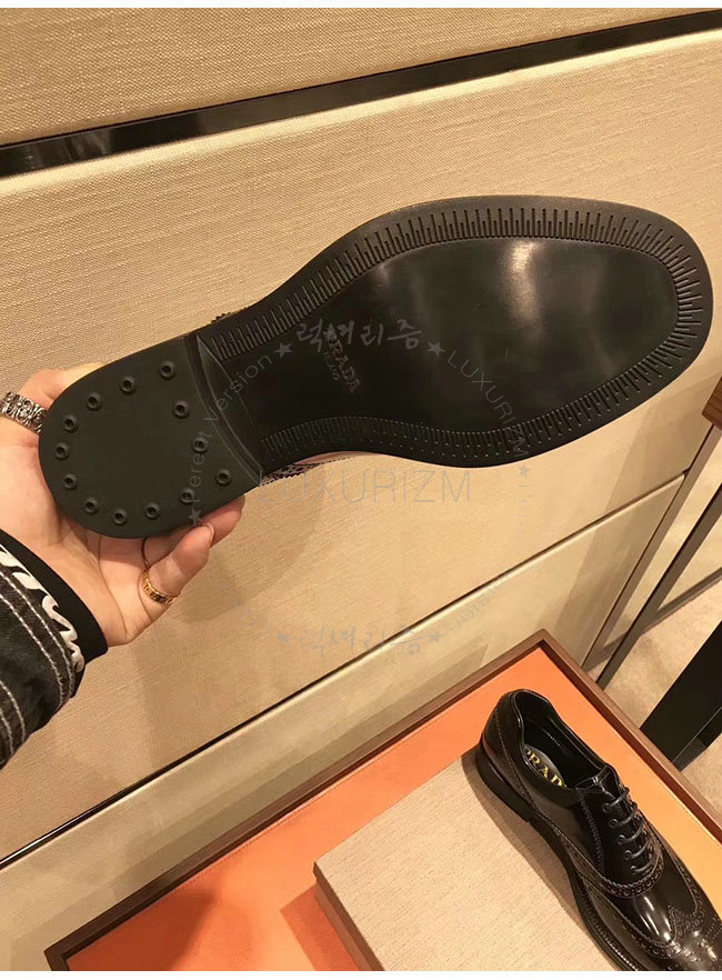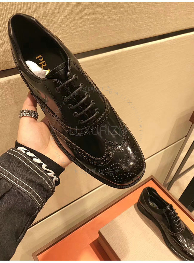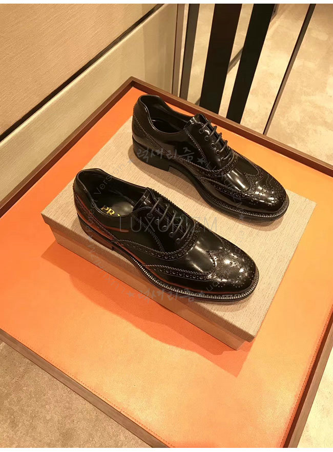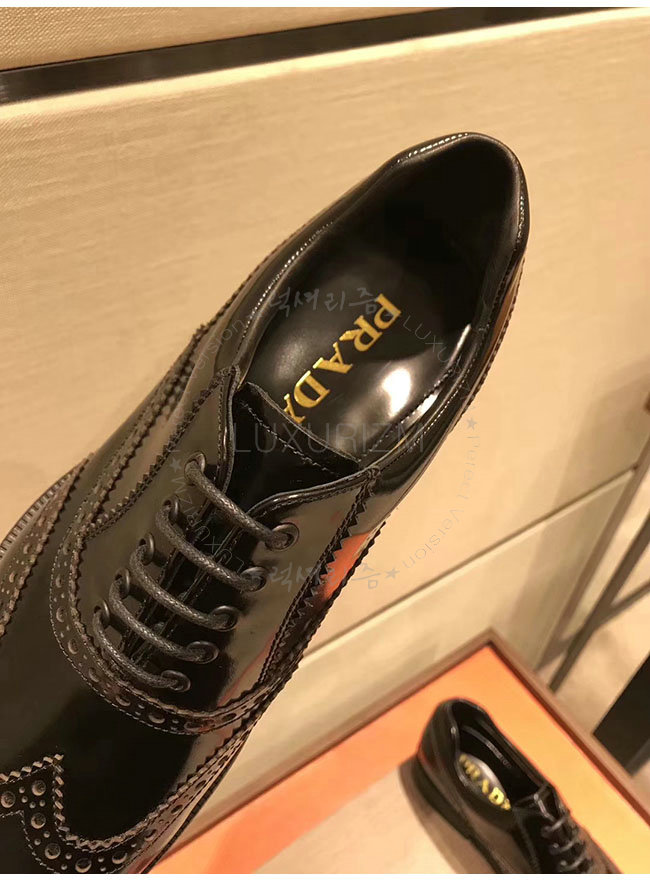 PRADA-2EE249 프라다 블랙 브로그 가죽 레이스업 남성용