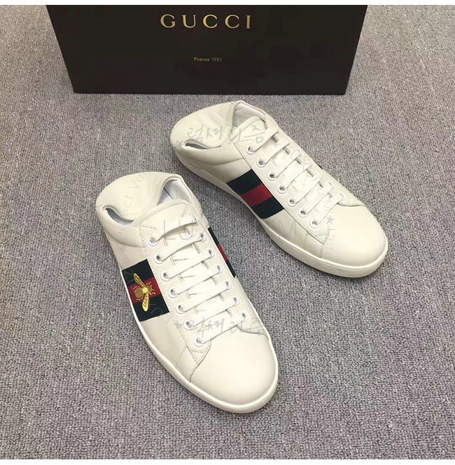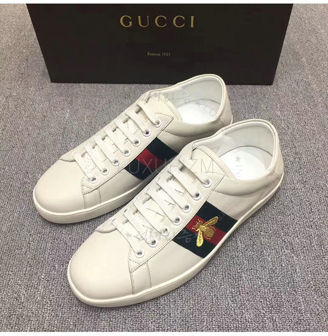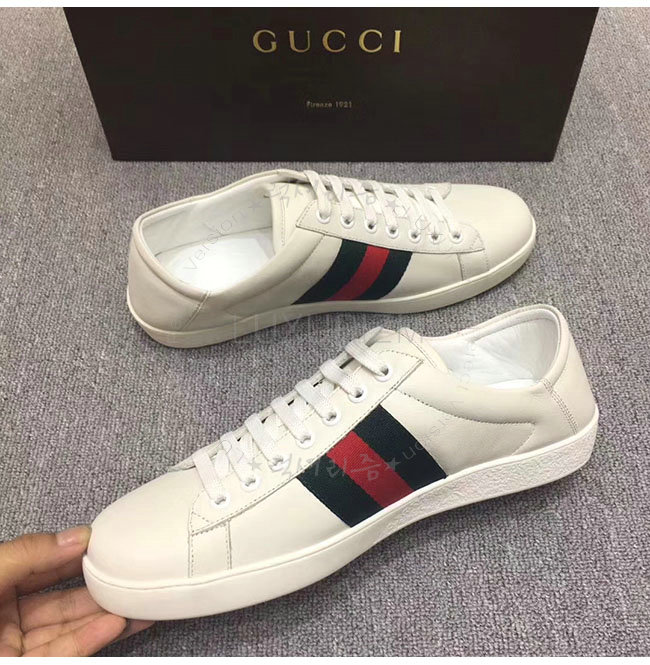 GUCCI-473762 9067 구찌 에이스 화이트 송아지가죽 로우탑 스니커즈 남성용
