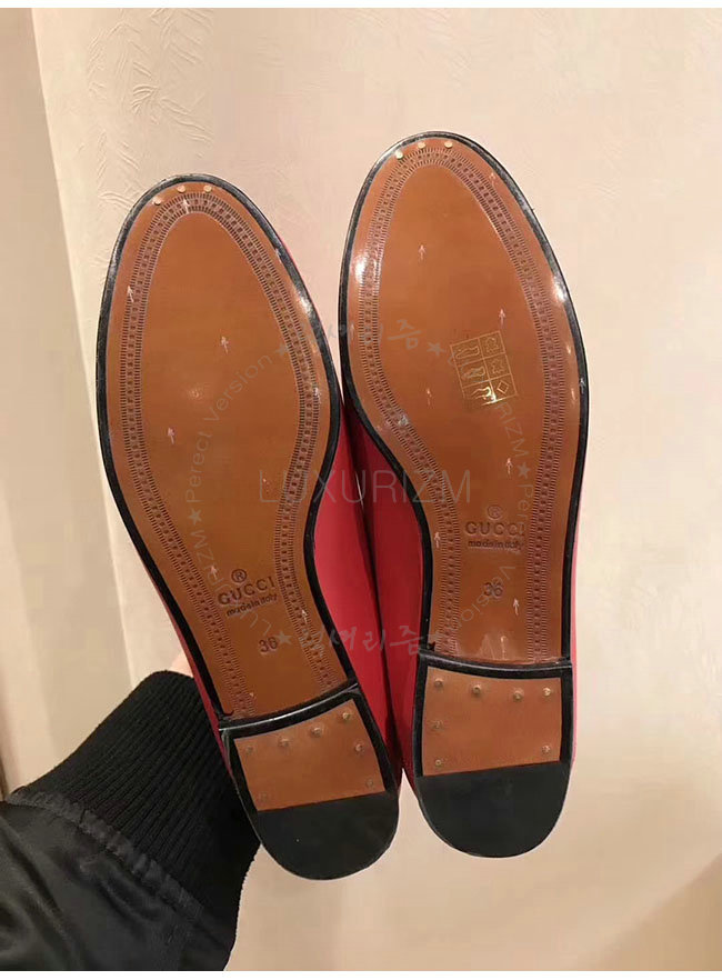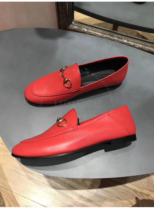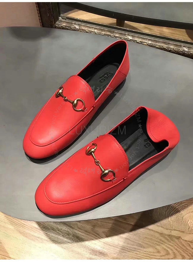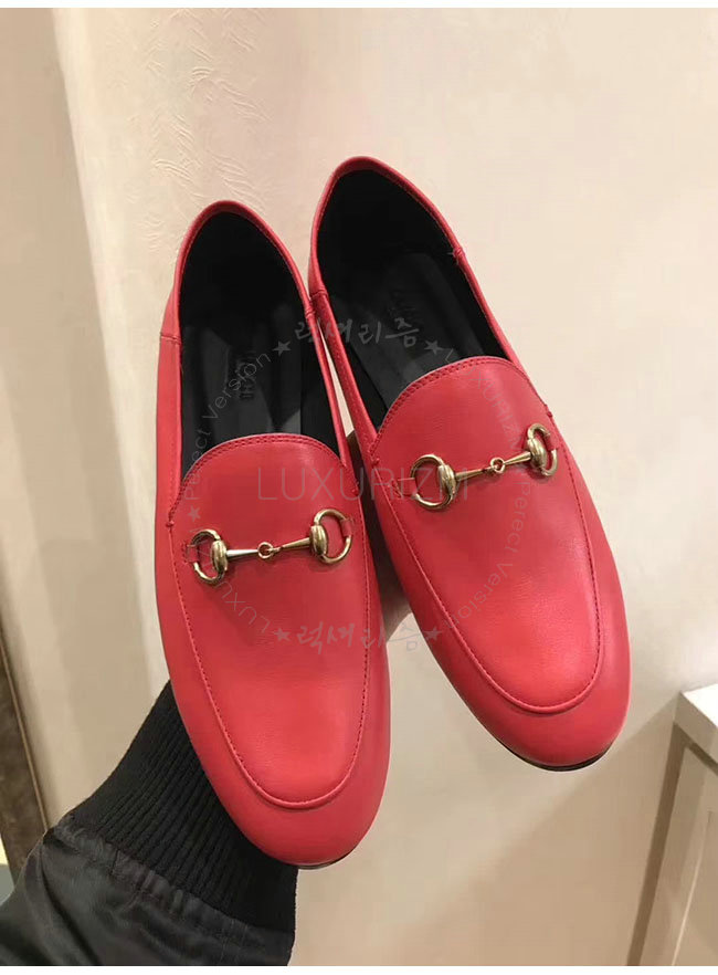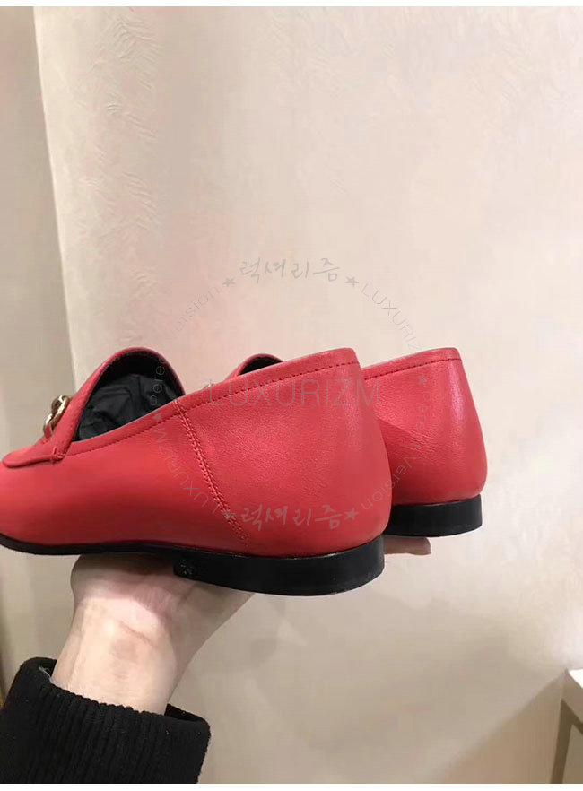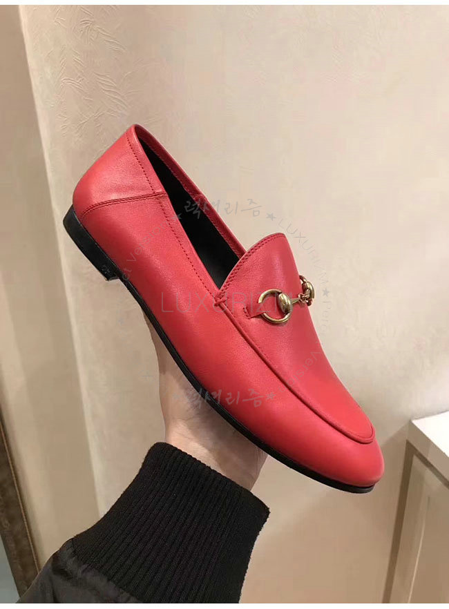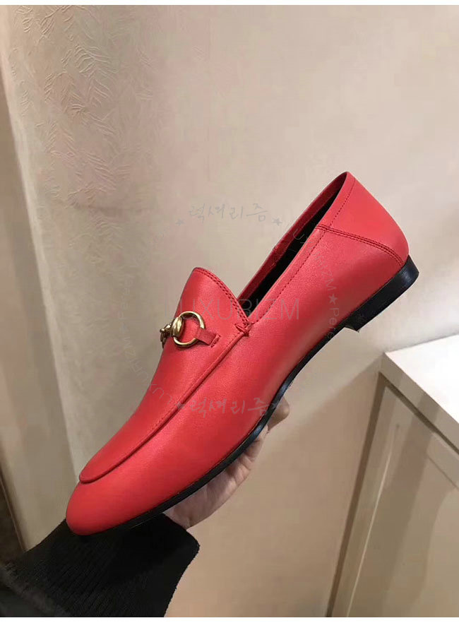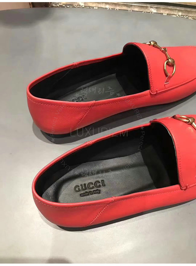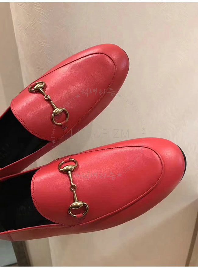 GUCCI-414998 7205 구찌 브릭스톤 레드 가죽 홀스빗 로퍼 여성용