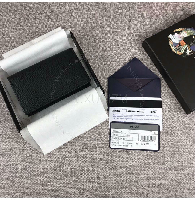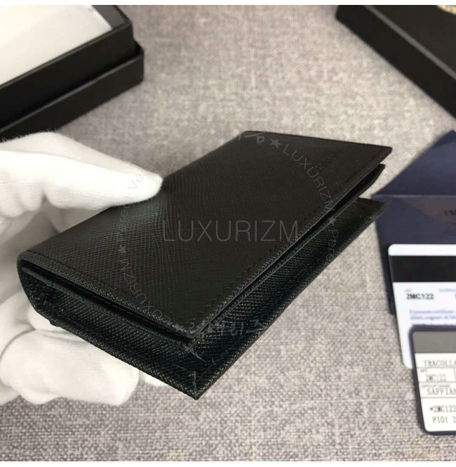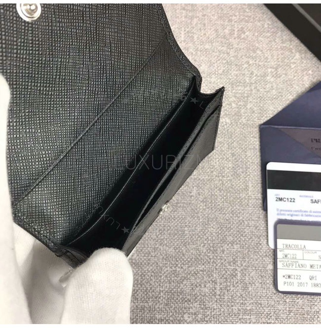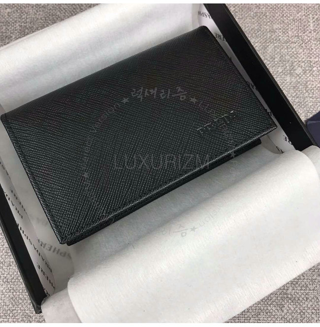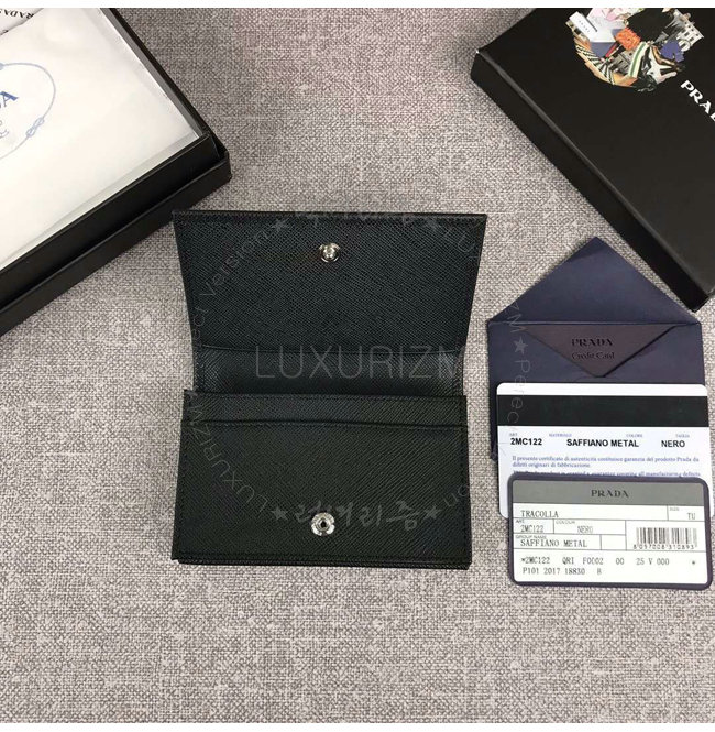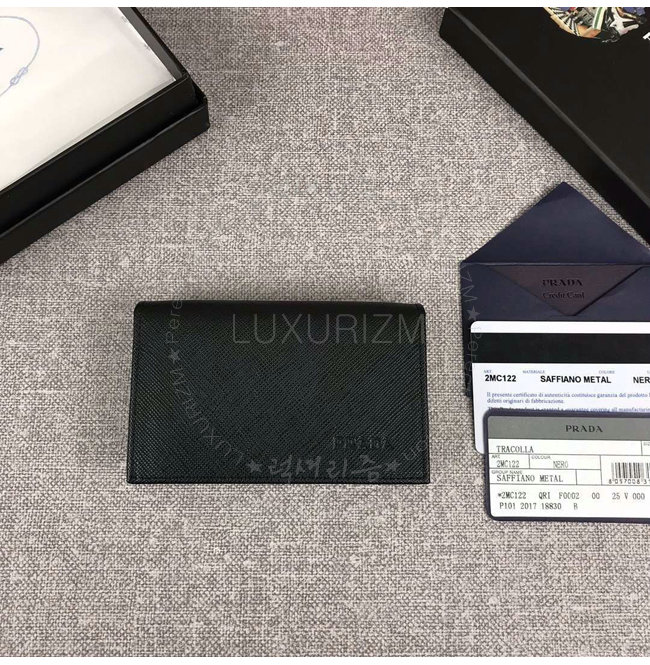 [스페셜오더]PRADA-2MC122 프라다 사피아노 가죽 메탈 로고 블랙 카드 지갑