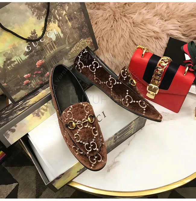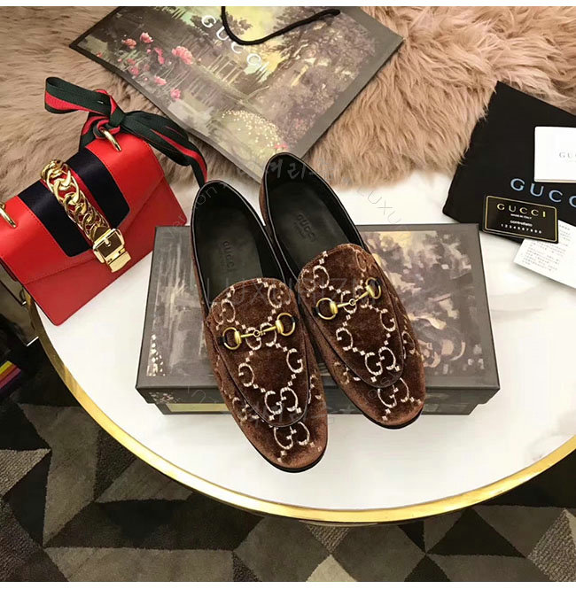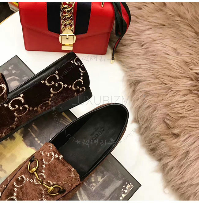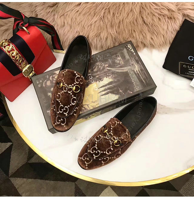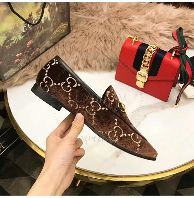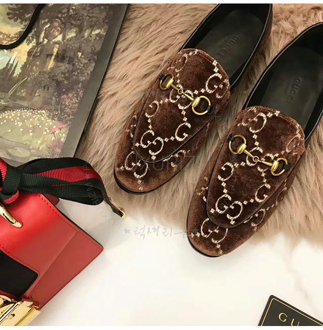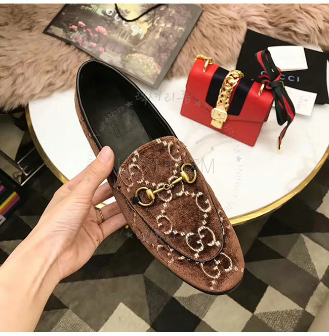 GUCCI-431467 2061 구찌 조단 GG 브라운 벨벳 로퍼 여성용
