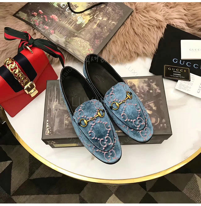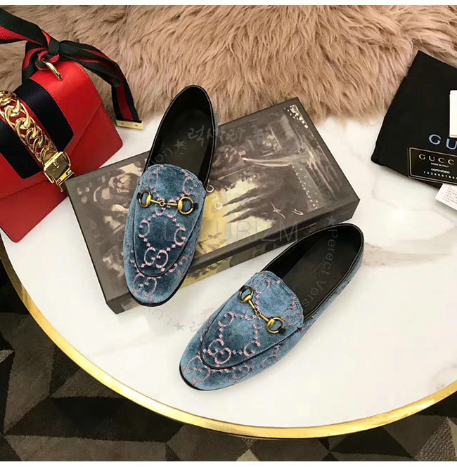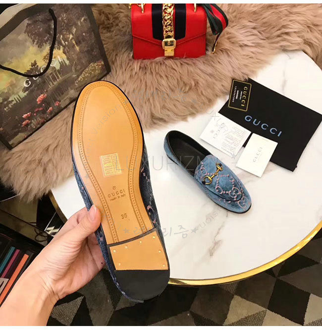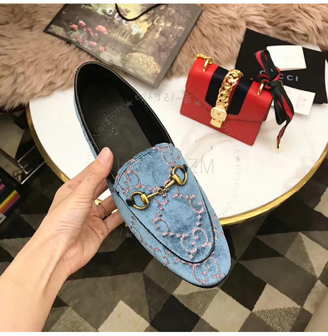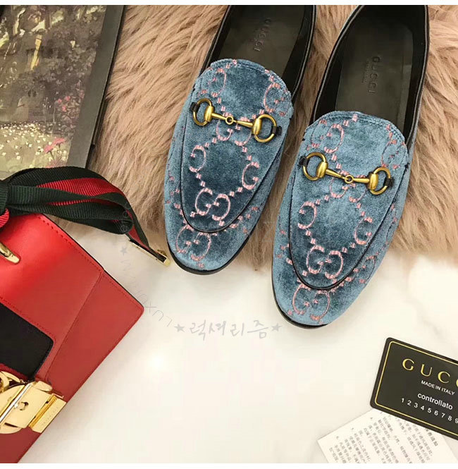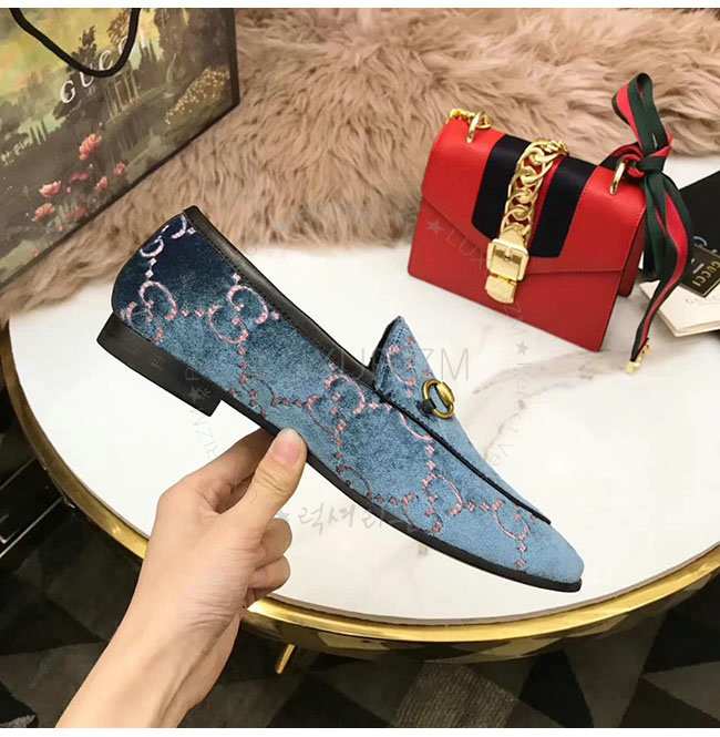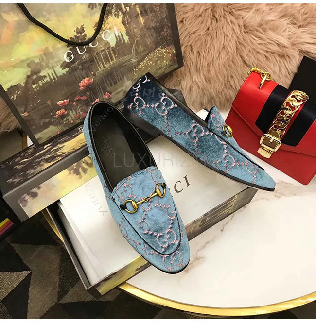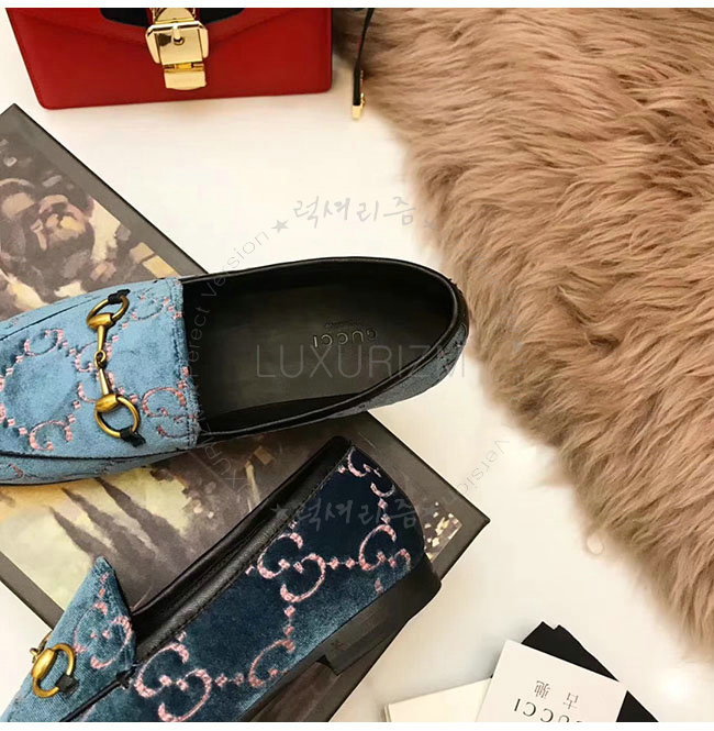 GUCCI-431467 5381 구찌 조단 GG 블루 벨벳 로퍼 여성용