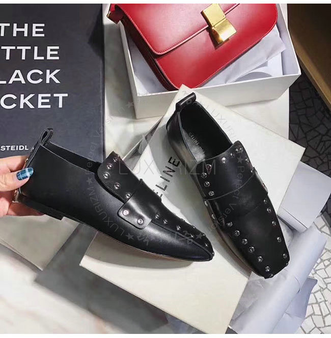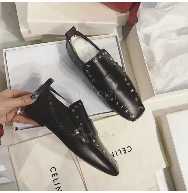 CELINE-320643 셀린느 블랙 나파 램스킨 소프트 모카신 여성용