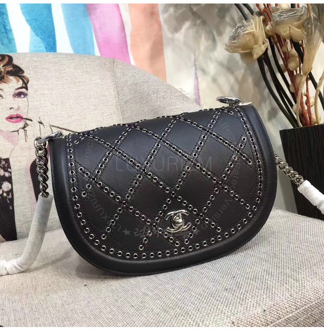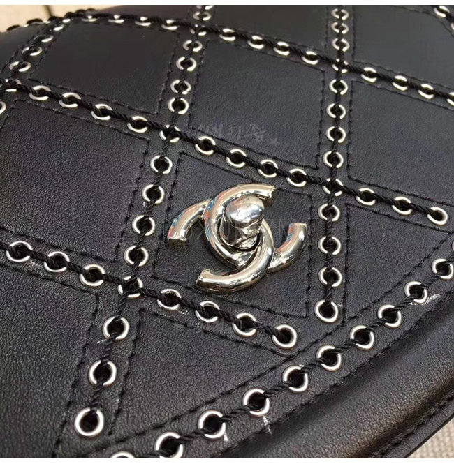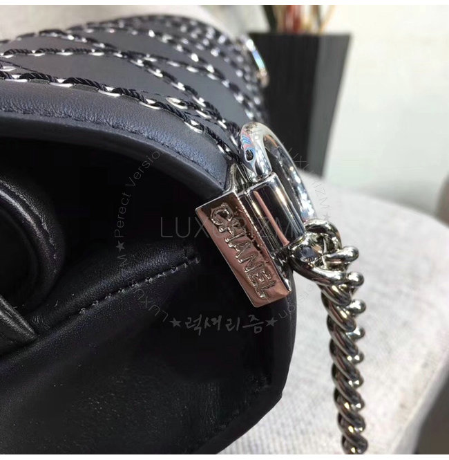 [스페셜오더]CHANEL-A69993 샤넬 카프스킨 아일릿 실버 메탈 블랙 플랩 백