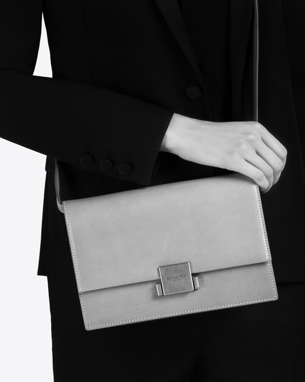 [스페셜오더]SAINT LAURENT-482044 생 로랑 미디엄 벨샤스 그레이 가죽 스웨이드 은장 숄더백