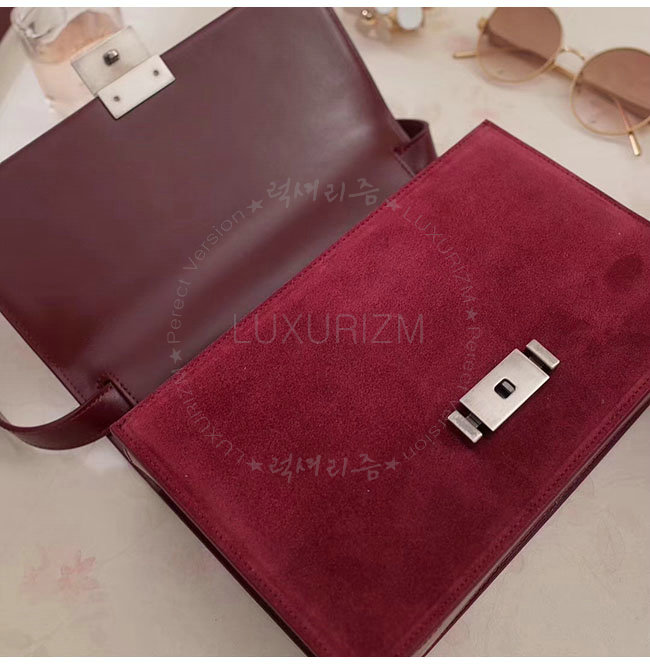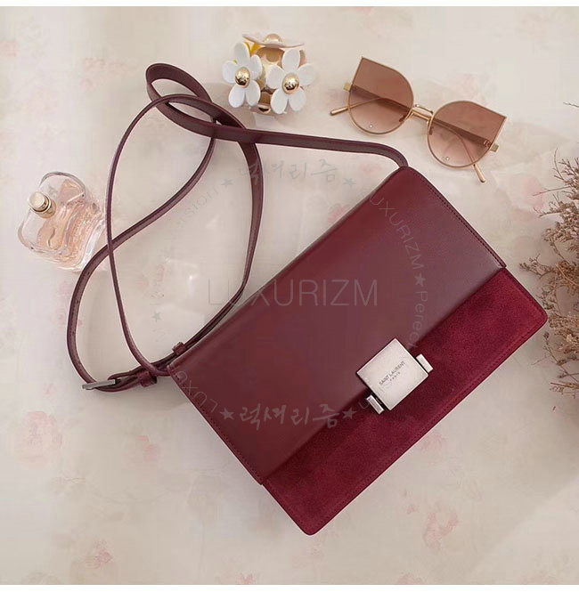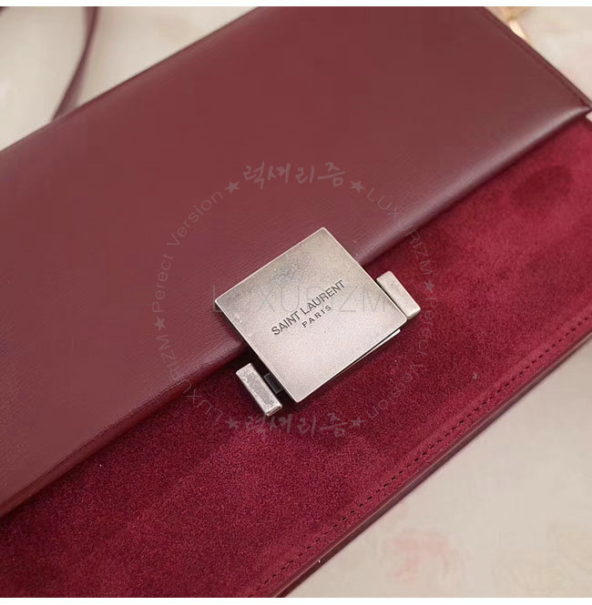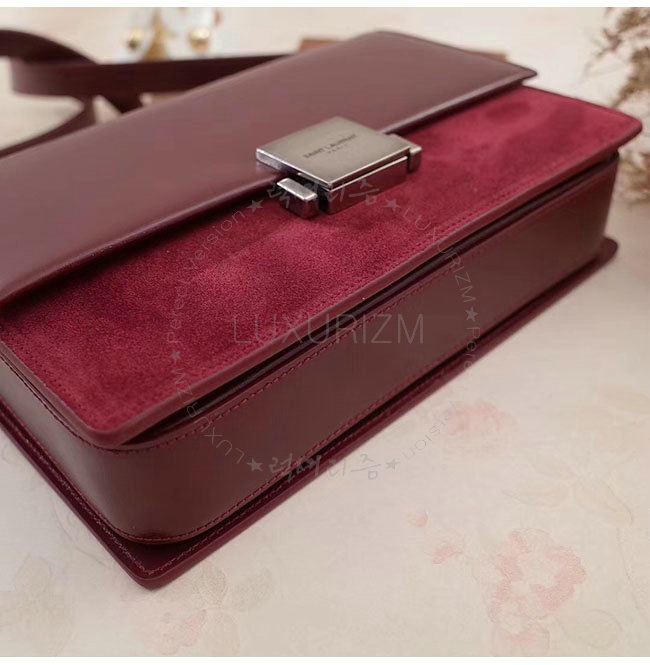 [스페셜오더]SAINT LAURENT-482044 생 로랑 미디엄 벨샤스 버건디 가죽 스웨이드 은장 숄더백
