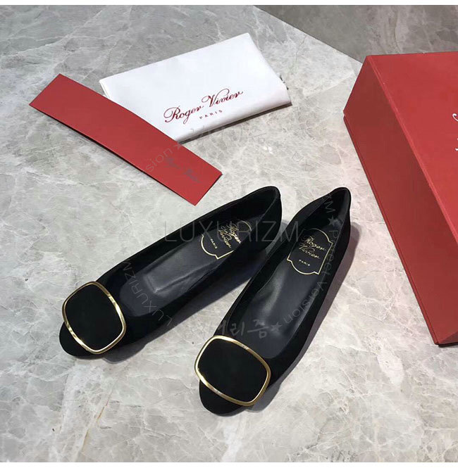 ROGER VIVIER-47821040 로저비비에 블랙 스웨이드 가죽 버티고 발레리나 여성용