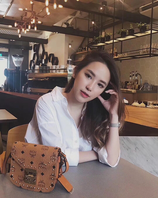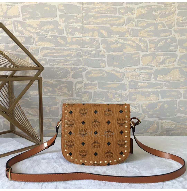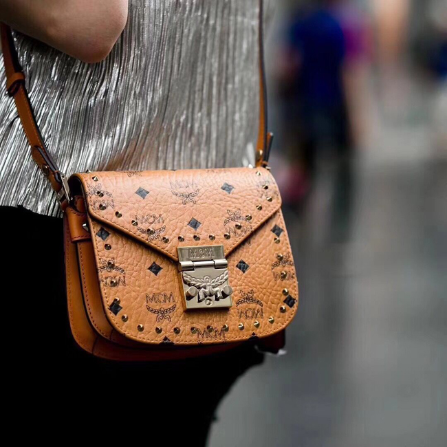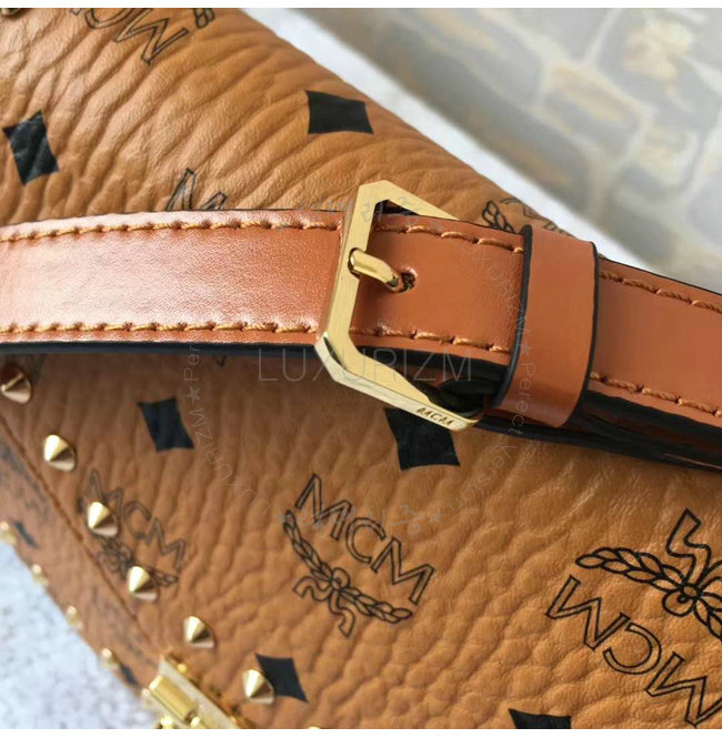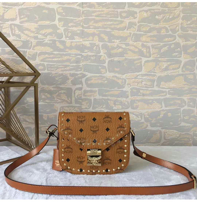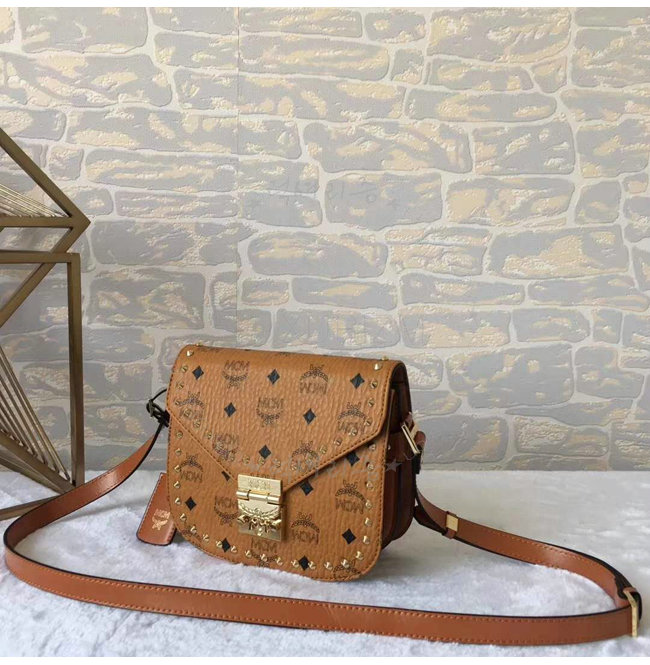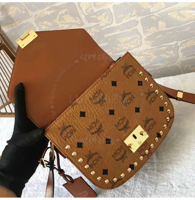 MCM-MWS7AP 엠씨엠 카멜 페트리샤 스터드 아웃라인 숄더 백