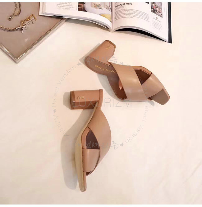 SAINT LAURENT-509357 생로랑 베이지 가죽 루루 라이드 샌들 펌프스 여성용