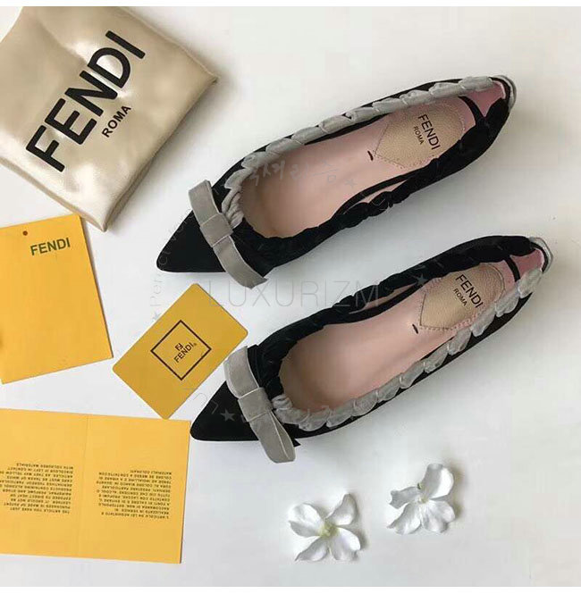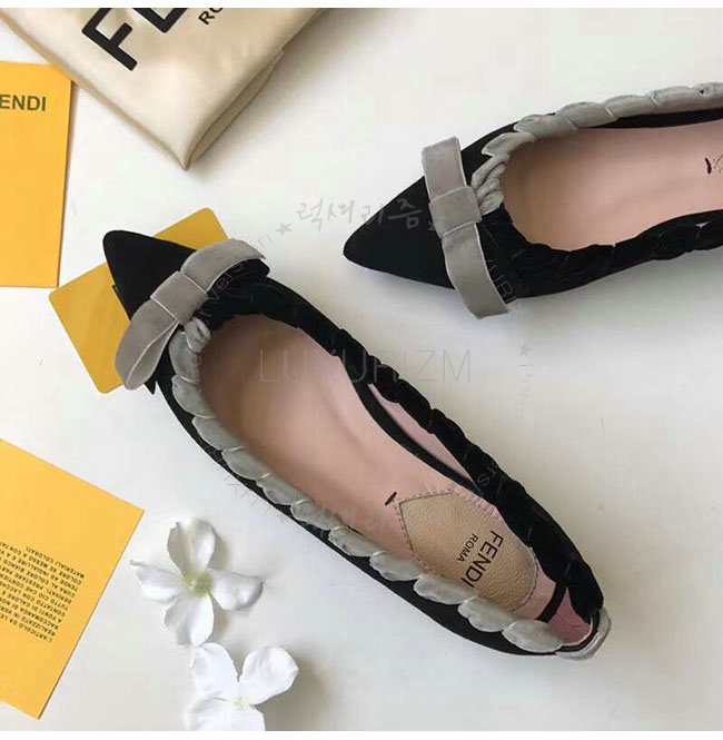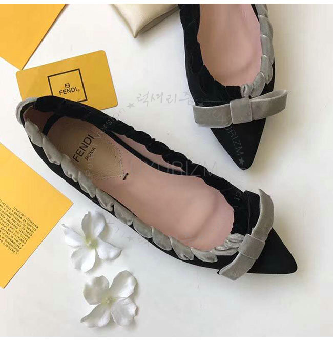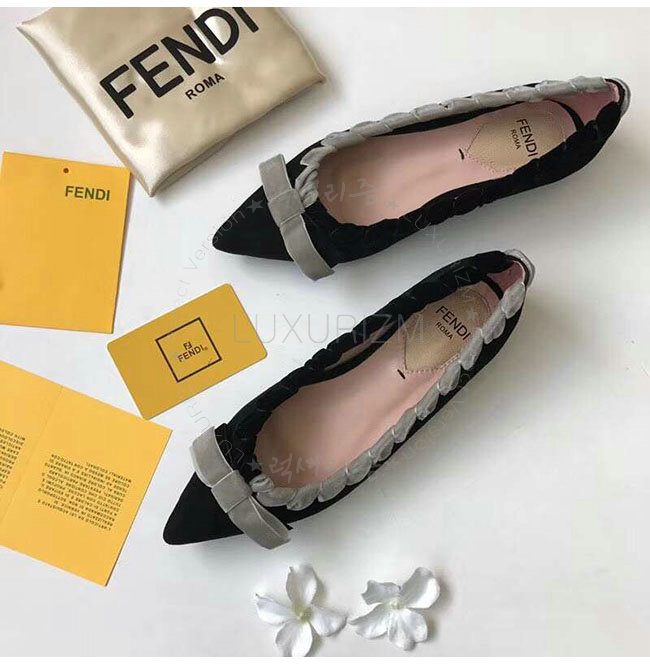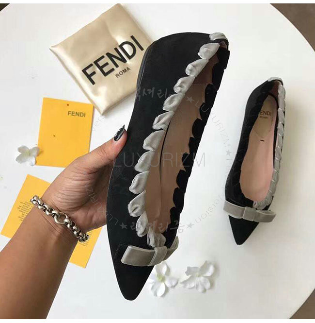 FENDI-8F6601 펜디 오베르진 블랙 스웨이드 가죽 발레리나 여성용