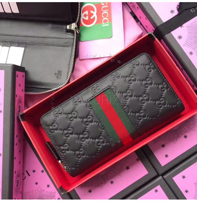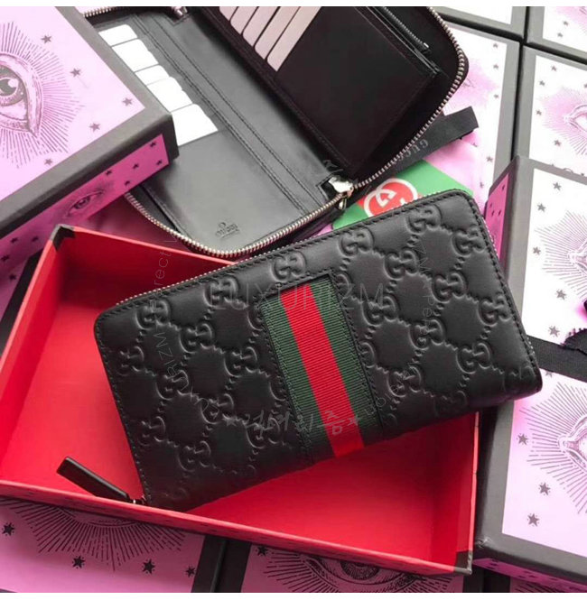 #구찌레플리카 구찌지갑 남성지갑쇼핑몰추천 럭셔리즘 [스페셜오더]GUCCI-459138 1060 구찌 Gucci 시그니처 가죽 Web 디테일 블랙 지퍼 지갑