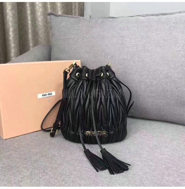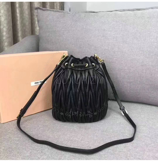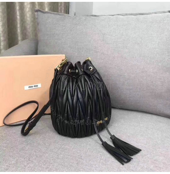 [스페셜오더]MIUMIU-5BE014 미우미우 마틀라세 가죽 블랙 버켓백