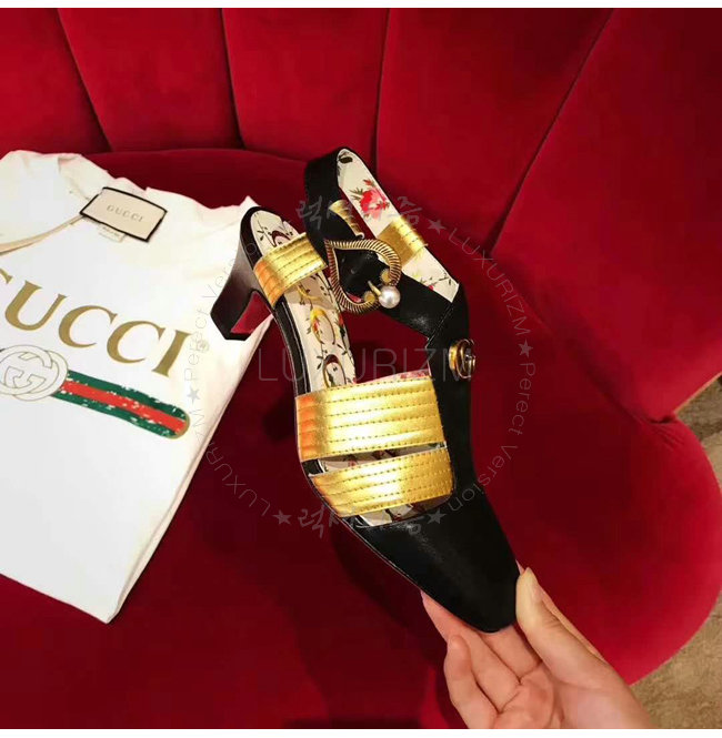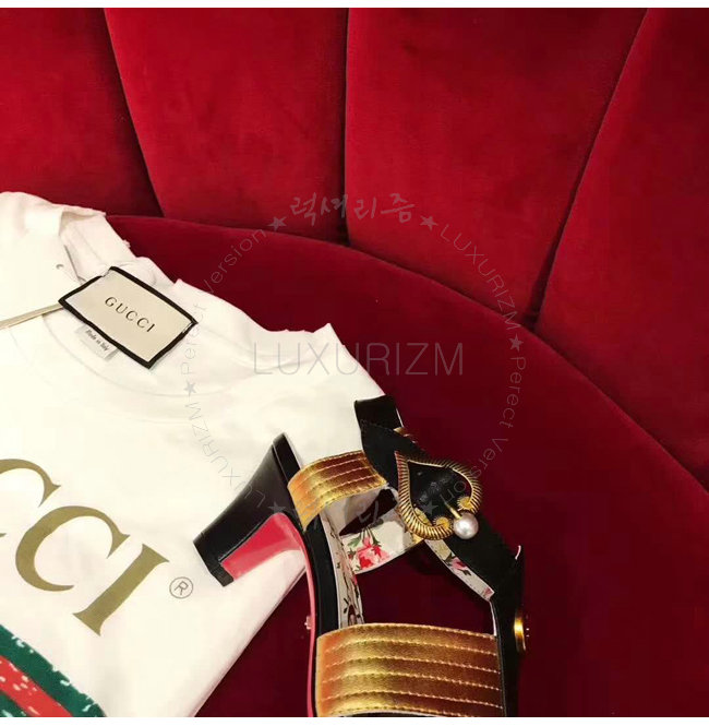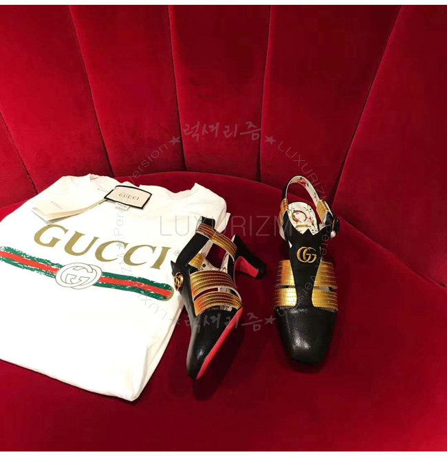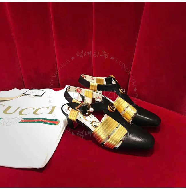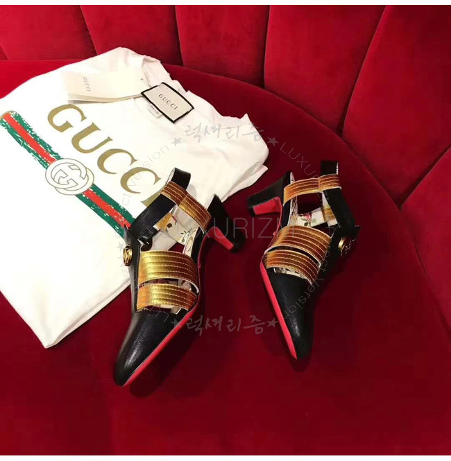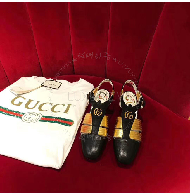 GUCCI-497485 1084 구찌 송아지 가죽 골드 힐 샌들